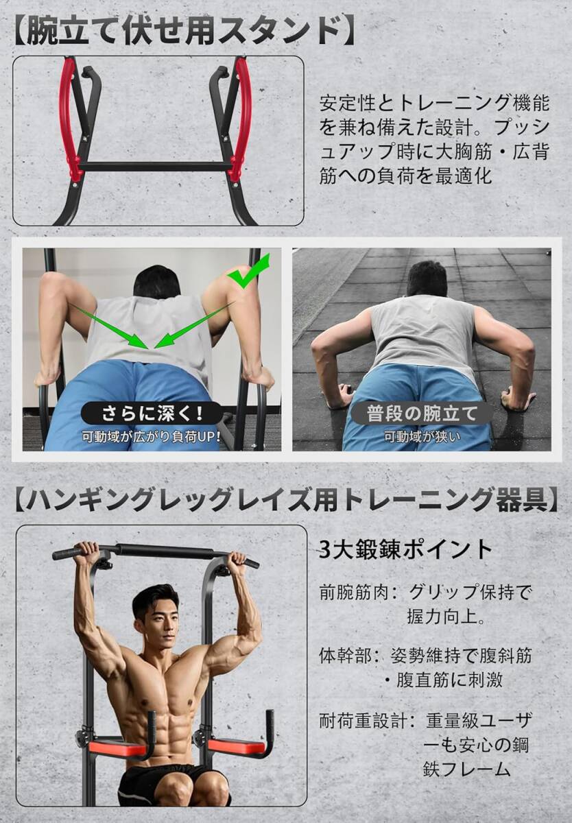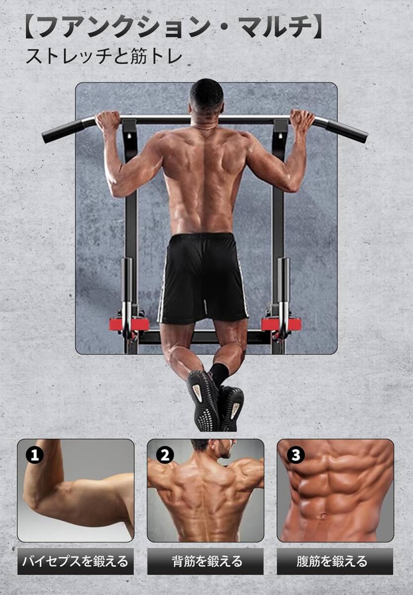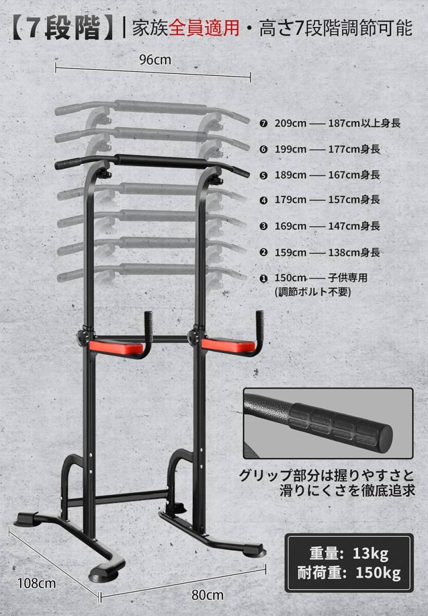 黒色 日本語説明書 MOJEER 懸垂マシン ぶらさがり 健康器 【 耐荷重150kg 高さ7段 】アームレスト プッシュアップバ一