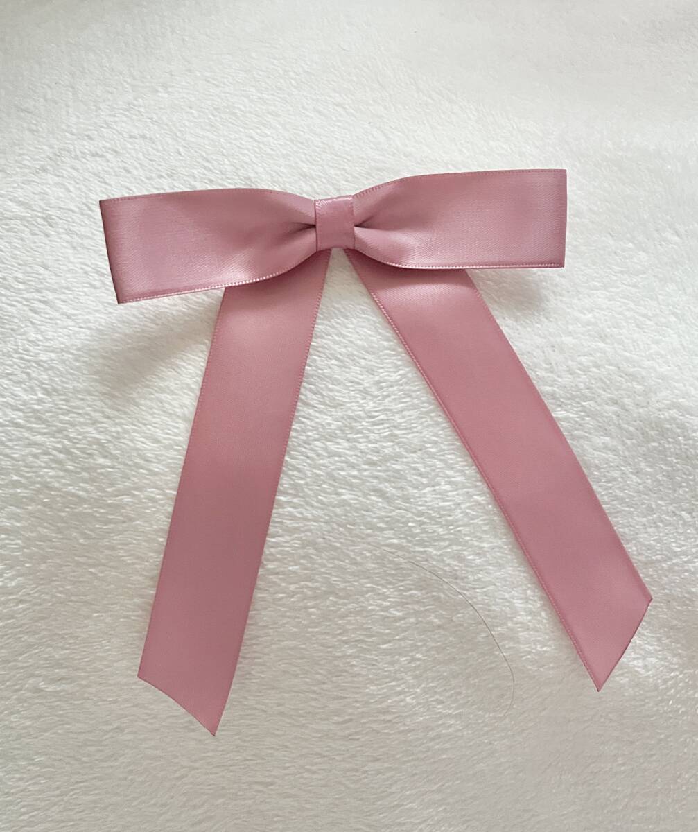 付属品に同色のリボンがあるのでお好きな所に付けて下さい。
