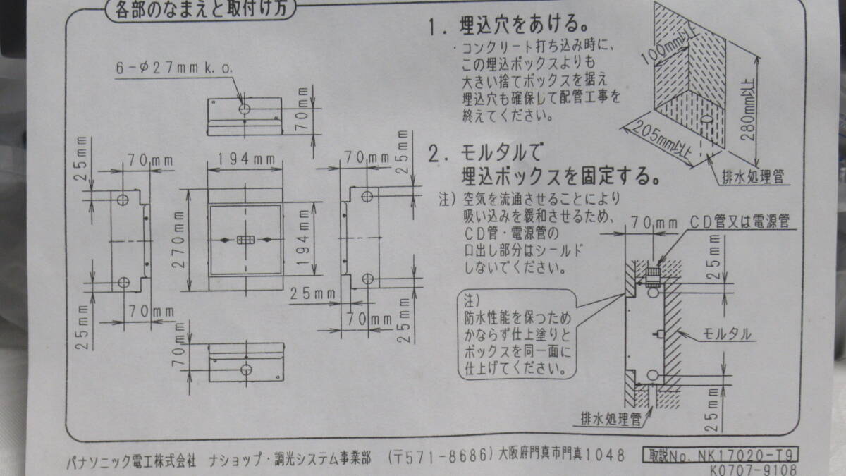 ・Panasonic 埋込ボックス (防雨型) NK17020 4個まとめ売り