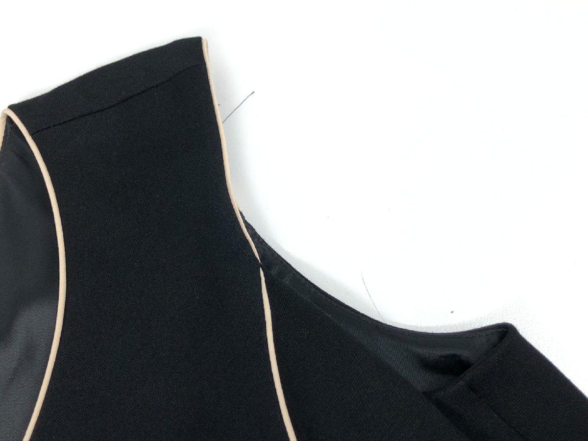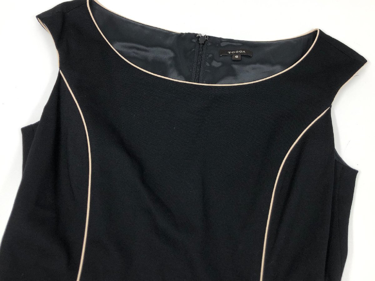 超美品【トッカ TOCCA】OP.TO.SA.0801 リボン×パイピングデザイン ノースリーブワンピース (レディース) size6 ブラック系 ◇17LO3818◇