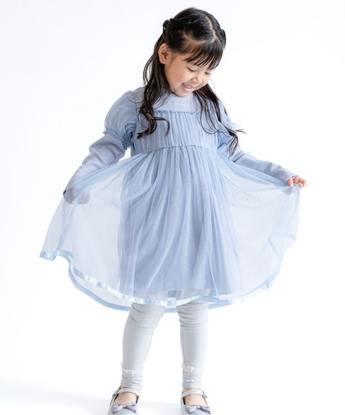 キーワード:ワンピース キッズ 子供服 チュール フレア 長袖 膝丈 無地