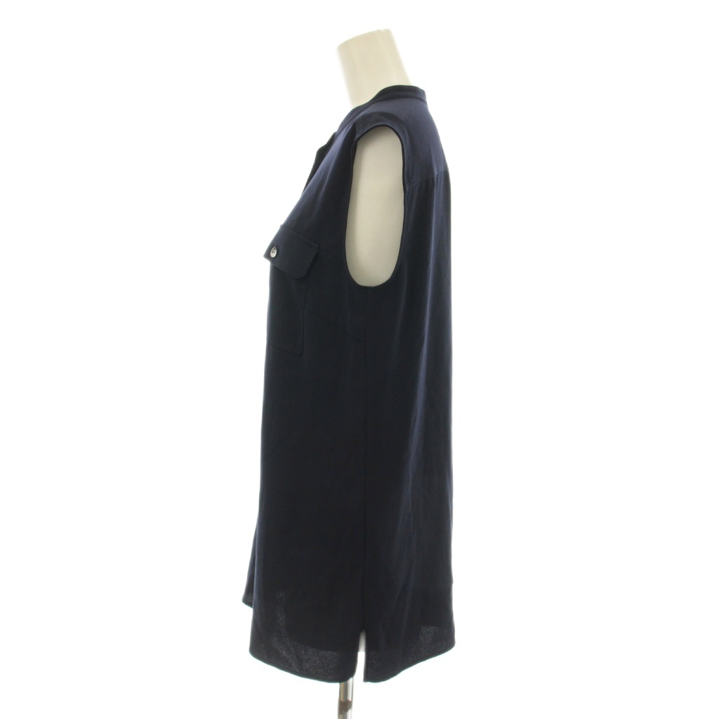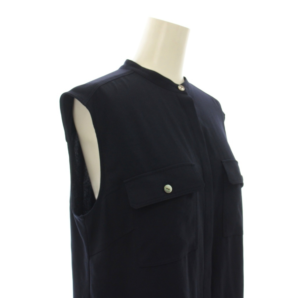 セオリー Theory 23SS POWDER CREPE SL MLT SHIRT スリーブレスブラウス シャツ ノースリーブ S 紺 ネイビー 01-3208200-890