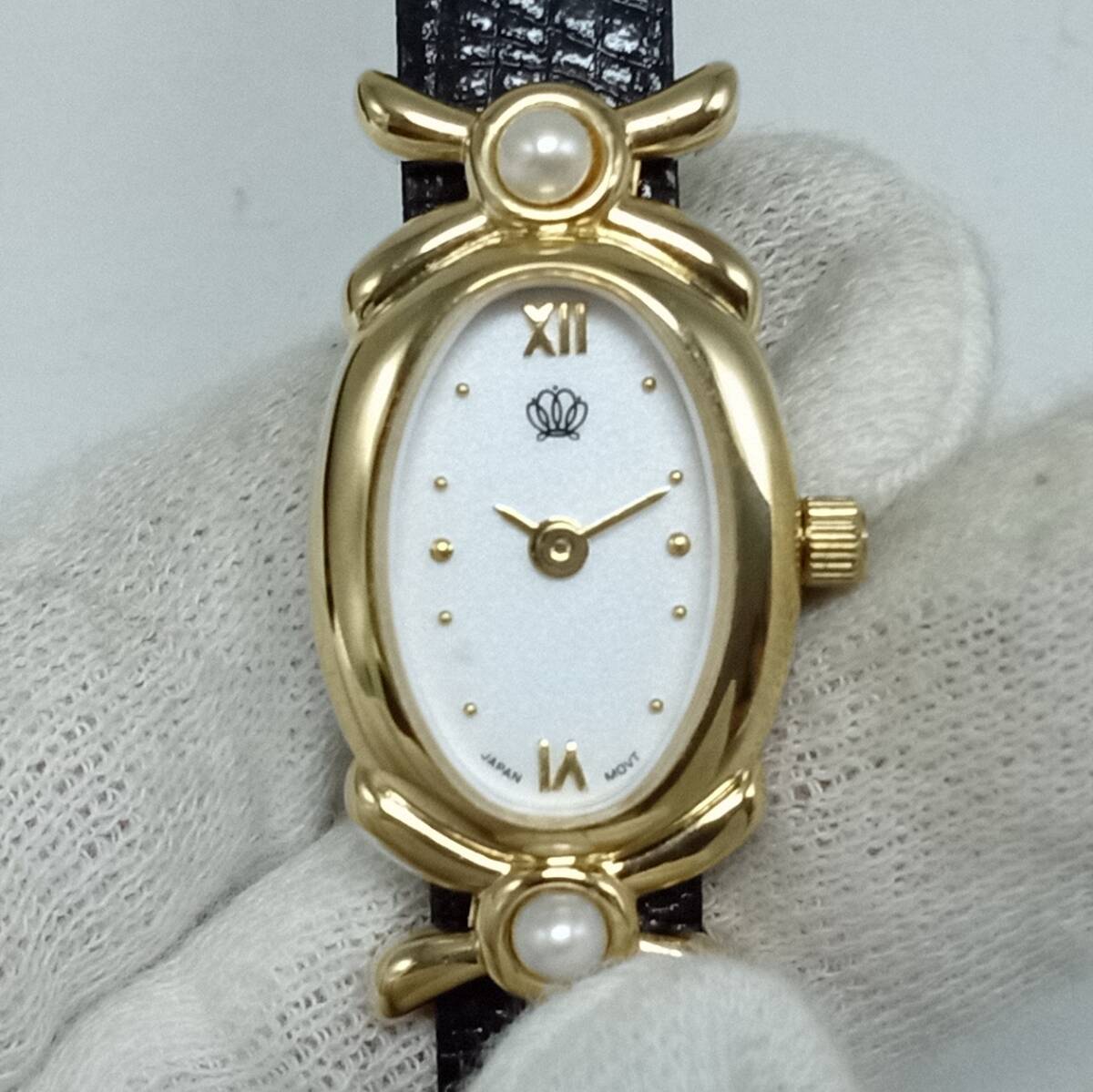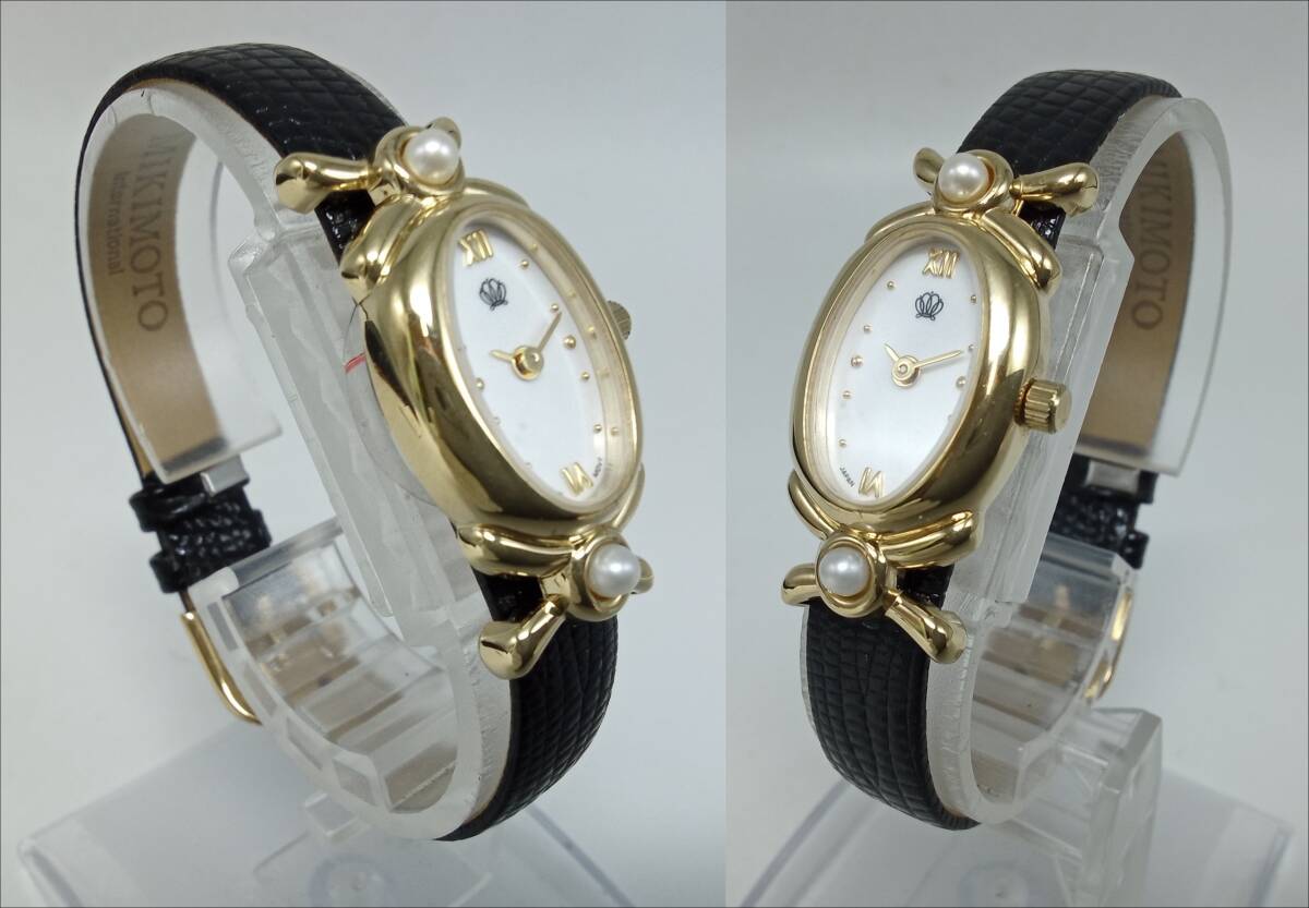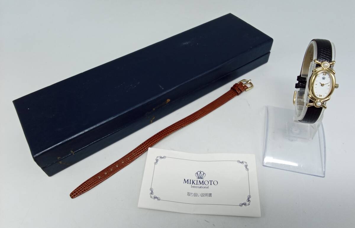 【QZ/不動品】腕時計 MIKIMOTO ミキモト パール ラウンド クォーツ 2針 パールサイズ約3mm 替えベルト・箱付き 現状品