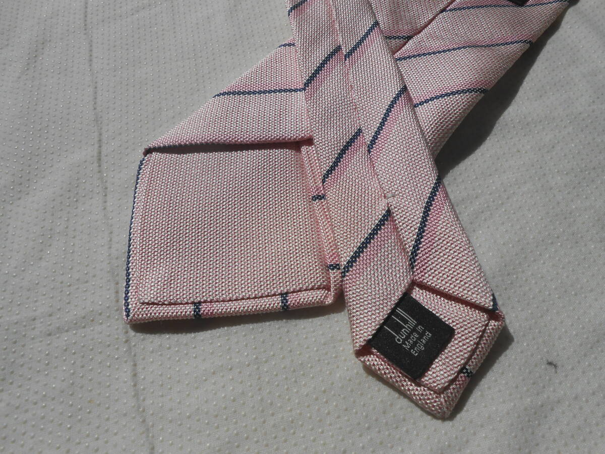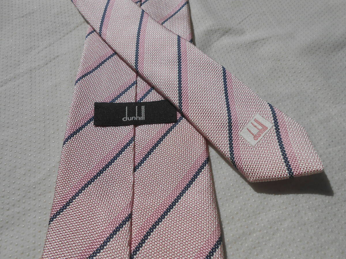 E488美品dunhillダンヒルストライプ柄ピンクネクタイ