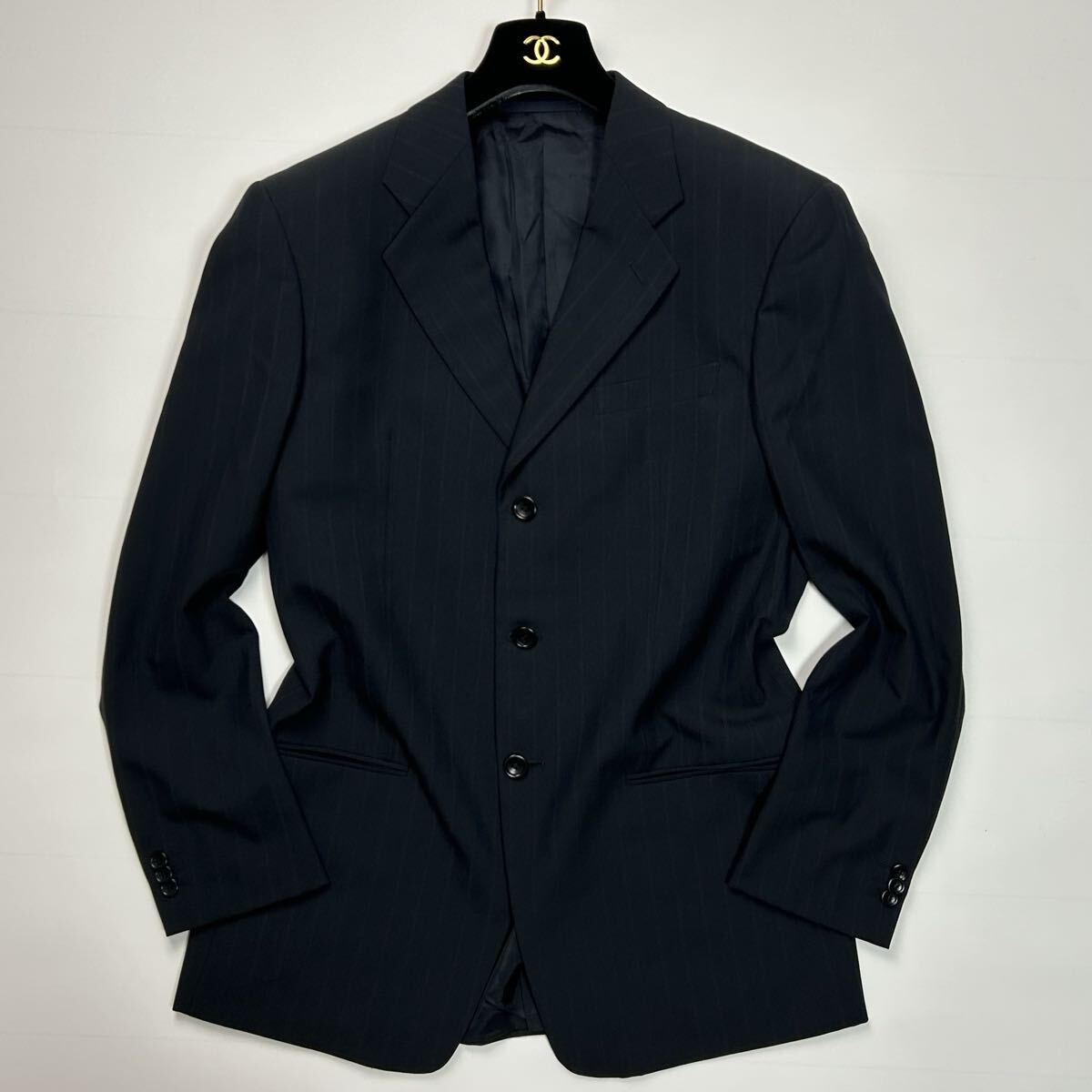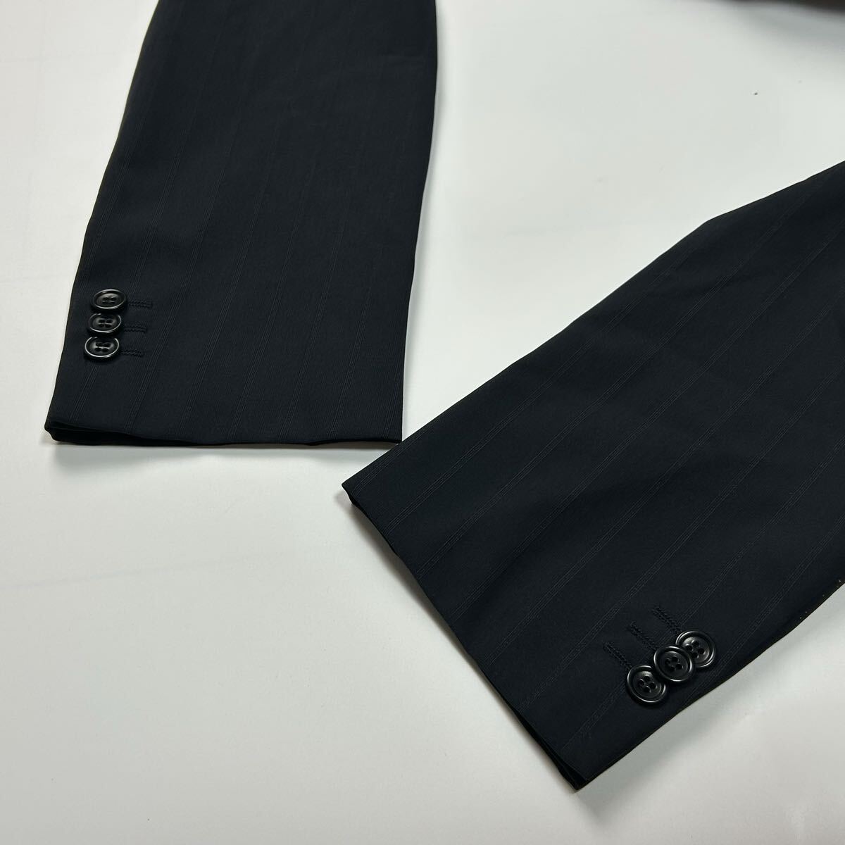 美品★ XLサイズ ARMANI COLLEZIONI アルマーニコレッツォーニ 3ピース スーツ ブラック 黒 ストライプ ビジネス カジュアル 最高級 メンズ