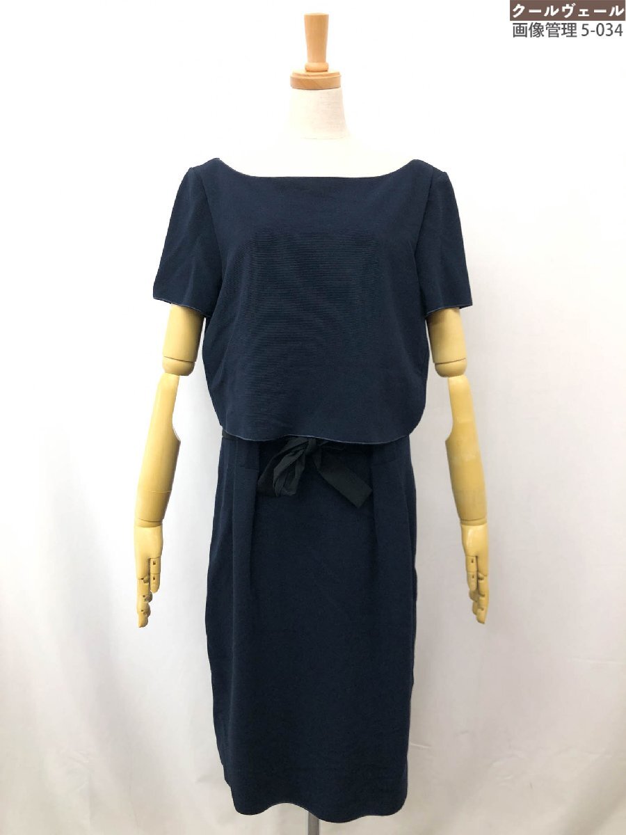 美品【エンポリオアルマーニ】3K2A8I 2JCFZ 半袖 ベルト付き ロングワンピース (レディース) size44 ネイビー系 ◇17LT5562◇