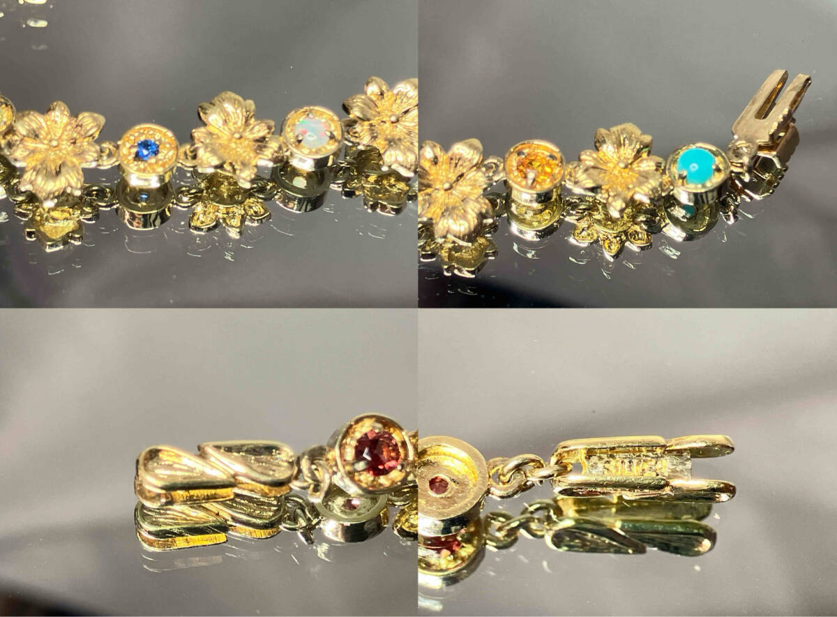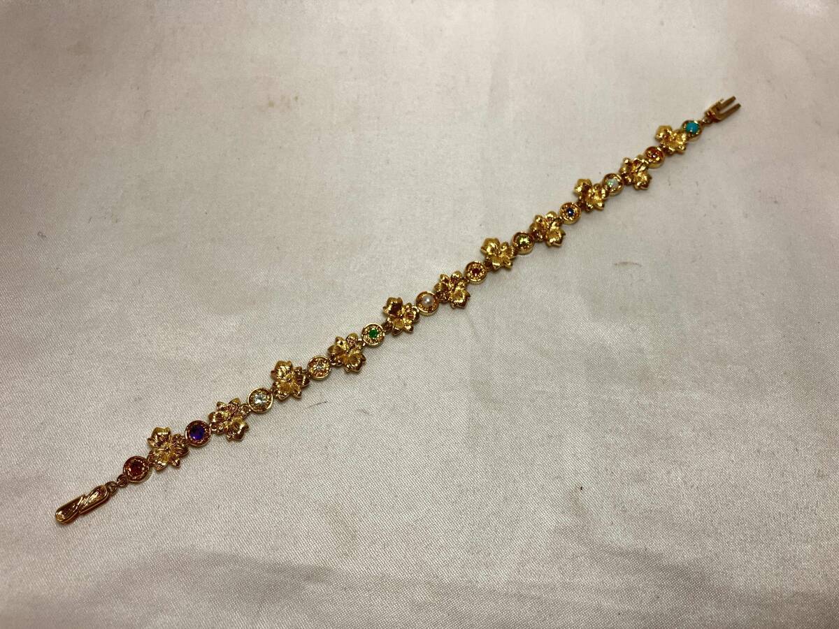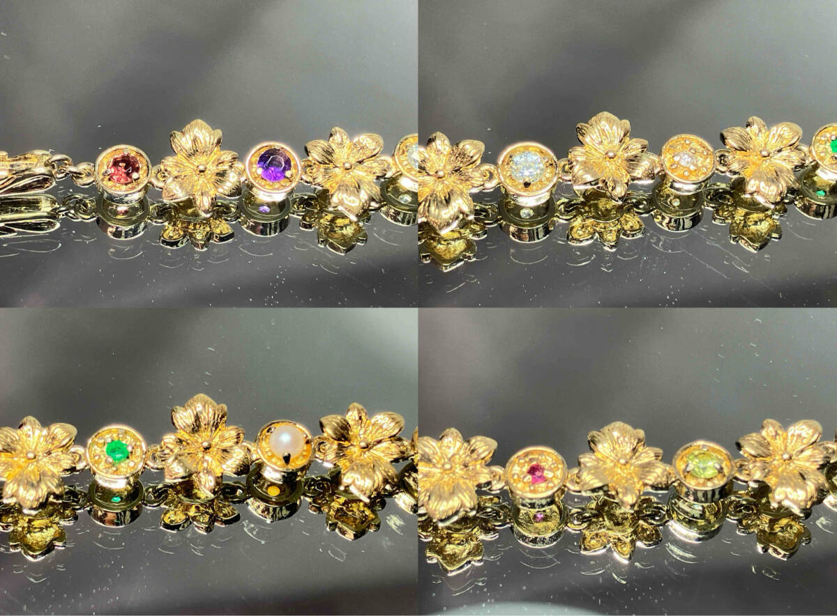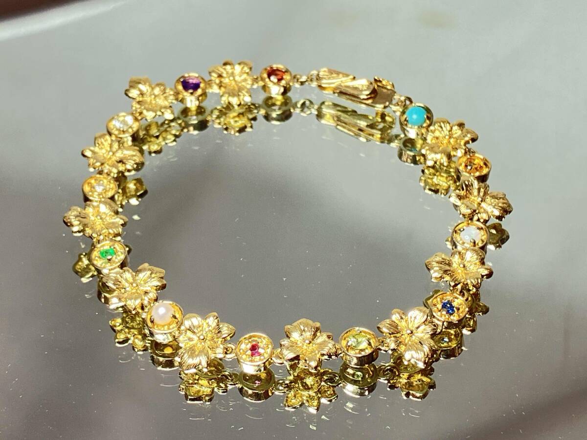 画像のものがすべてです 商品名:12ヶ月の宝石ブレスレット 素材:SILVERに金メッキ 全長:約19cm 幅:約0.9cm 総重量:10.6g 状態:小傷有り 付属品:なし サイズはスタッフが手計測しているため多少の誤差がでるばあいがございます。ご了承ください。 ストーンの鑑別は行っておりません。 |
