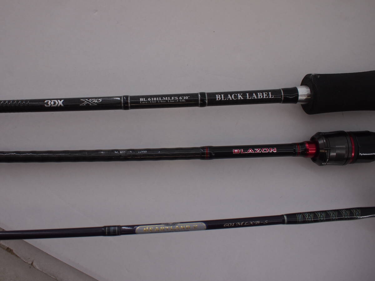 【 商品名 】 ダイワ バスロッド3本 【 コンディション 】 中古品です。 キズ、汚れがあります。 ブラックレーベル BL6101KMLFS:リールシート等に少々キズ、汚れがあります。 ハートランドZ HL-2601ML×B・S:グリップに黒ずみ・目ぬけあり、 トップブランクスにささくれあり(トップガイドの補修跡かもしれません) ブレイゾン 641 ULS-ST・V:特に目立ったキズ、汚れはみられません。 画像のものが全てです。 箱、取扱説明書はございません。 以上の状態をご理解の上でご入札をお願い致します。 【 発送について 】 佐川急便の運賃元払いのみの取扱いとなります。 ※その他の発送方法には対応できません。落札後に指定されても対応致しかねます。 手渡し、引取などにも対応致しかねます。ご承知の上でご参加下さい。