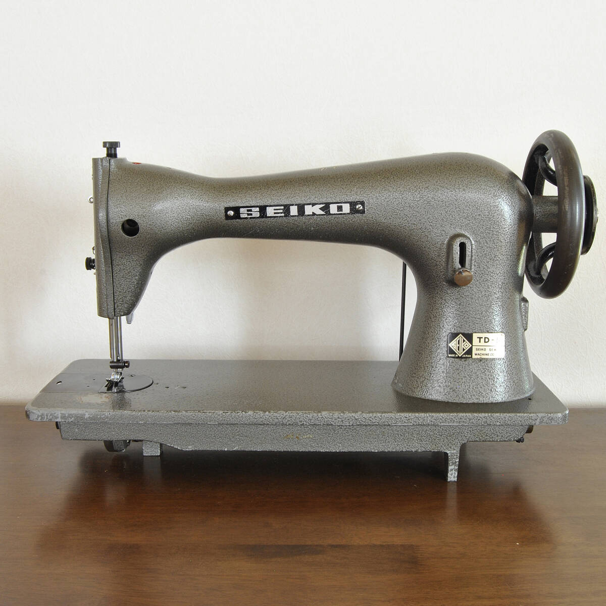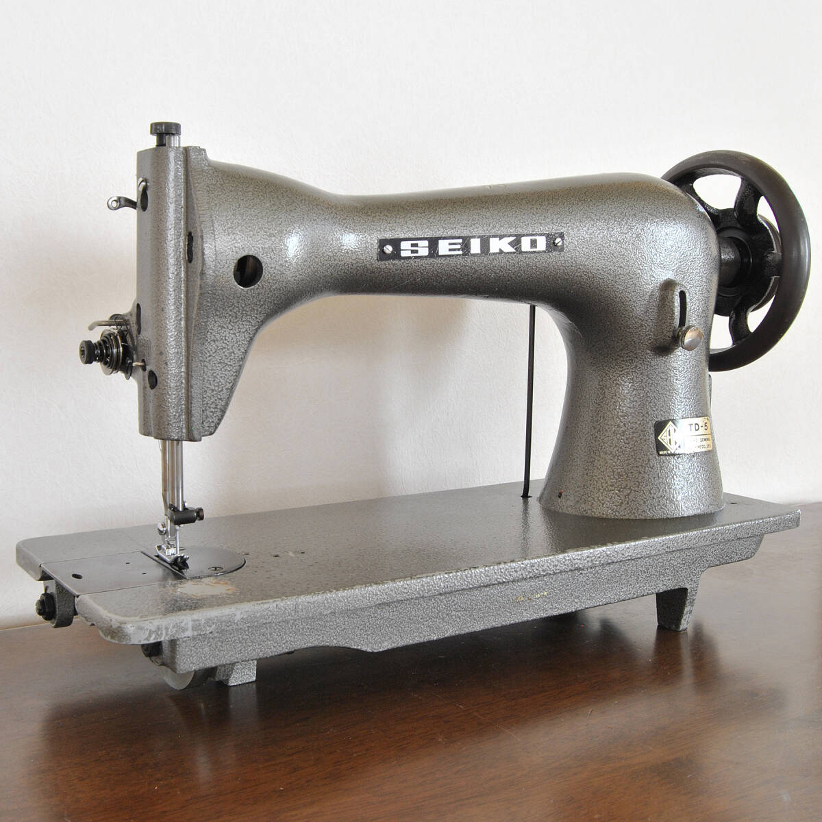 SEIKOのTD-5です。ミシン本体のみです。ボビン(1個)、ボビンケース(1個)、針(1本)はミシン本体に取り付けてあります。