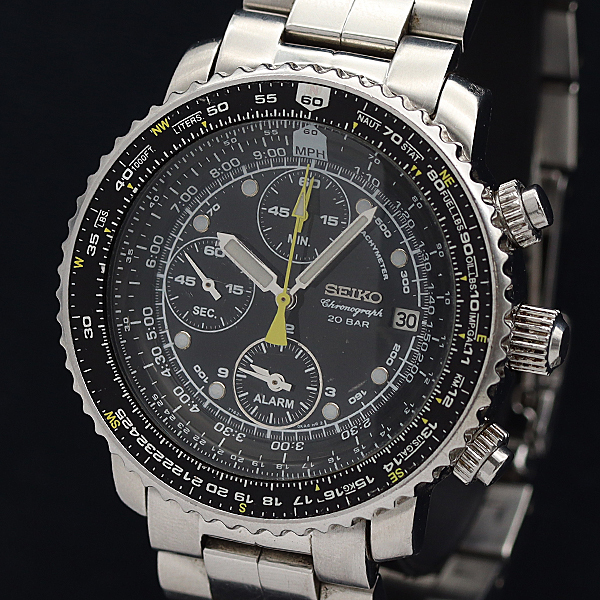 1円 稼働 セイコー クロノグラフ 7T62-0EB0 ブラック文字盤 QZ メンズ腕時計 5105100 8BGT MST