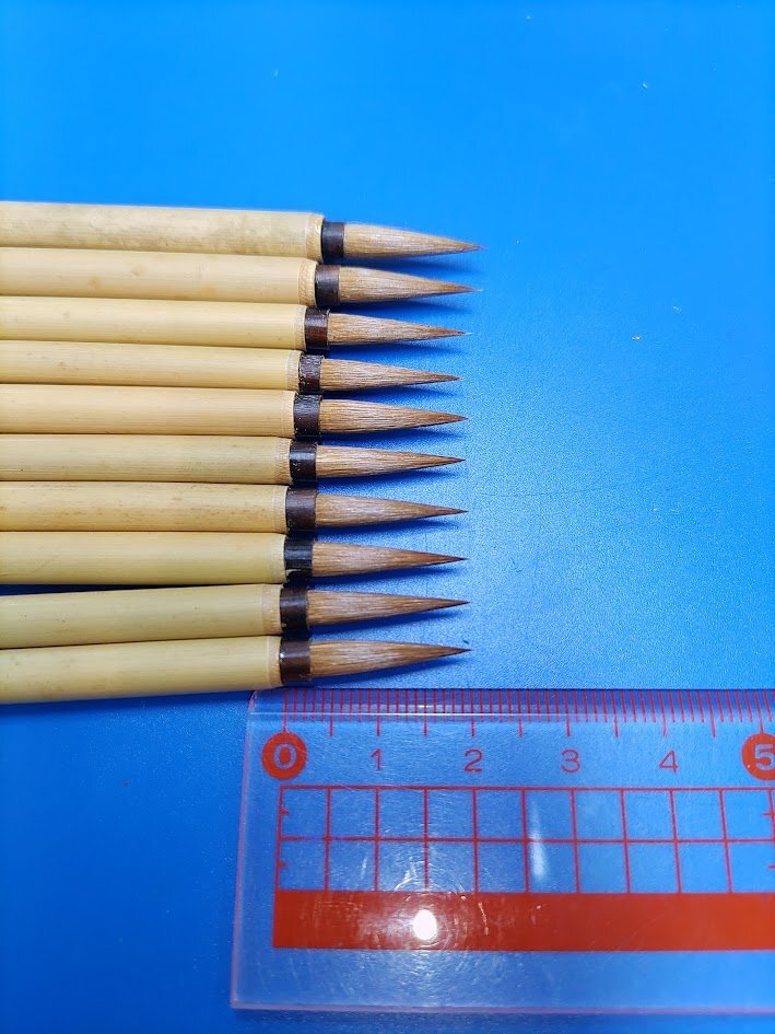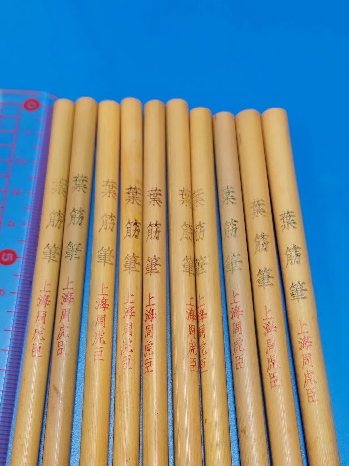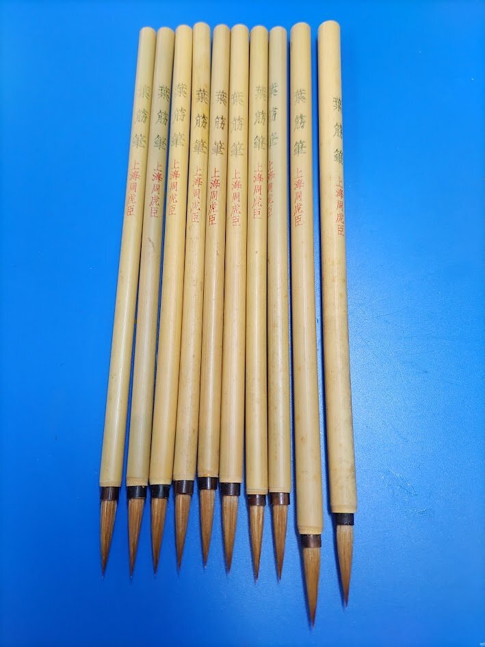 唐筆【葉筋筆】10本 周虎臣 上海周虎臣 竹さや 古い筆 古筆 書道用筆 狼毫筆 面相筆 カナ用F2542