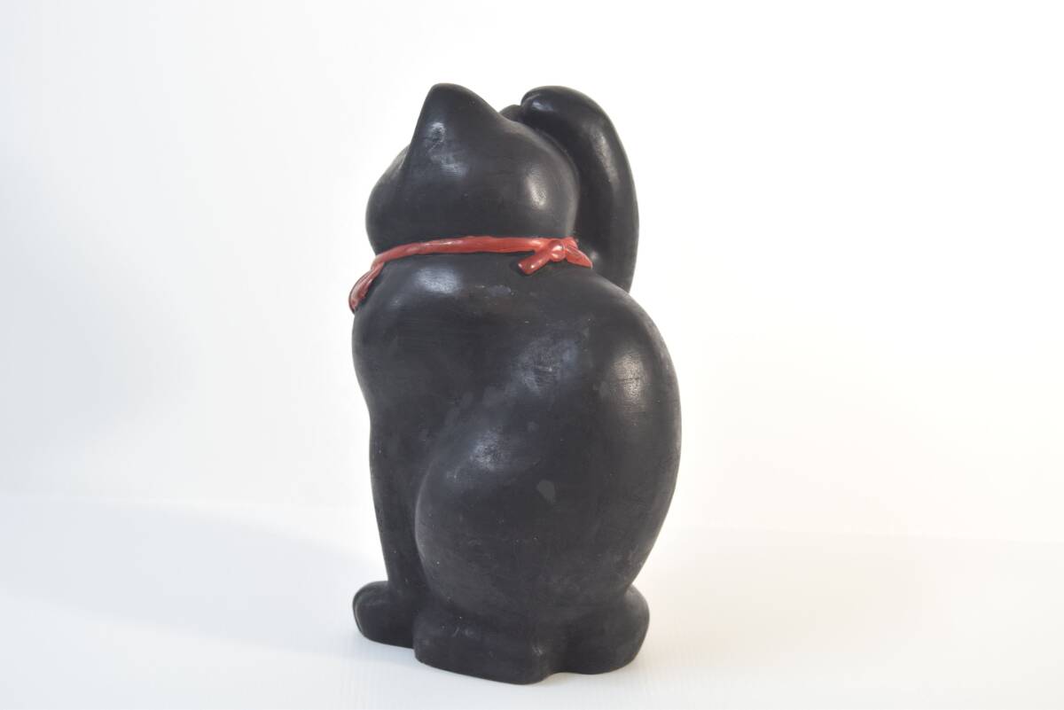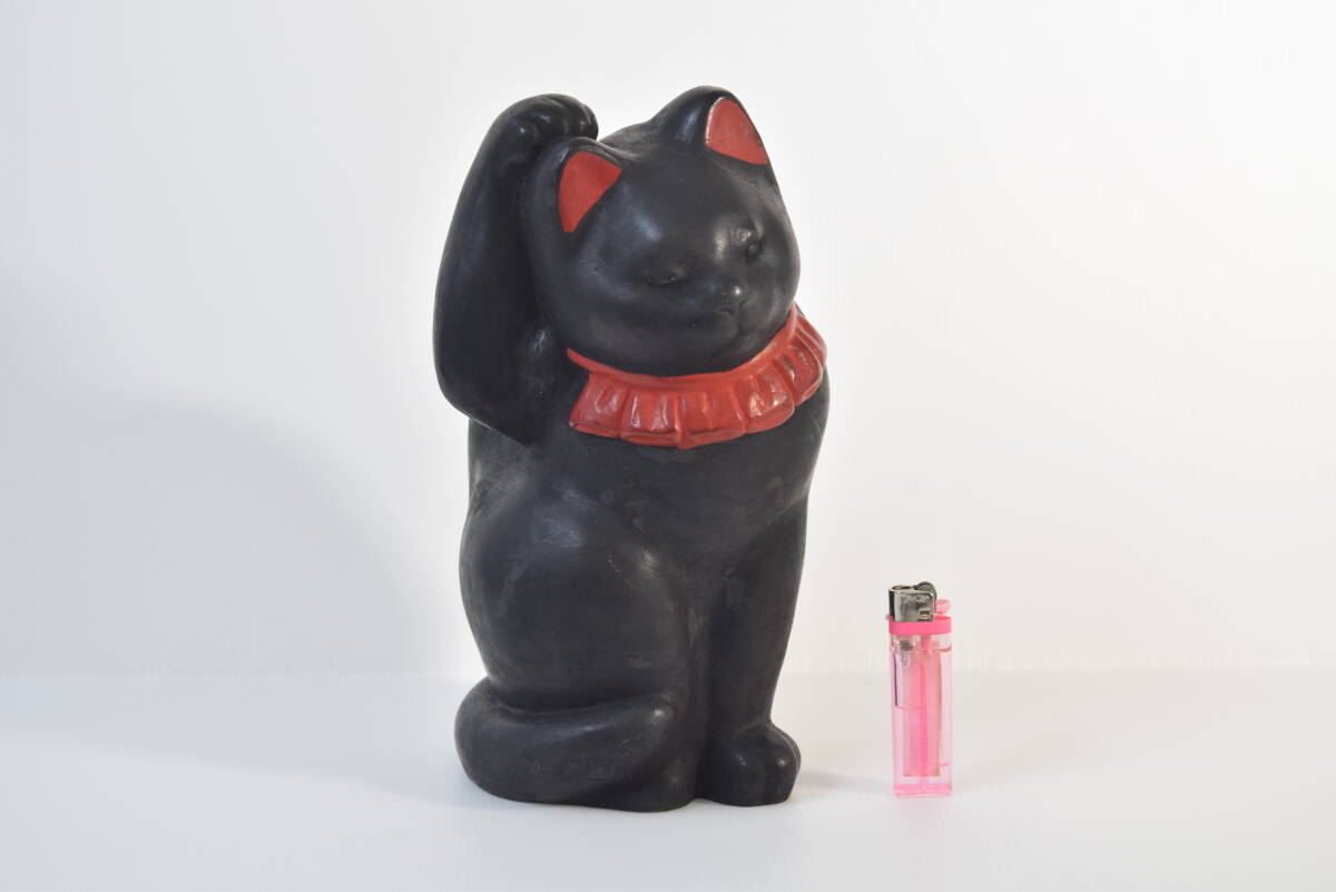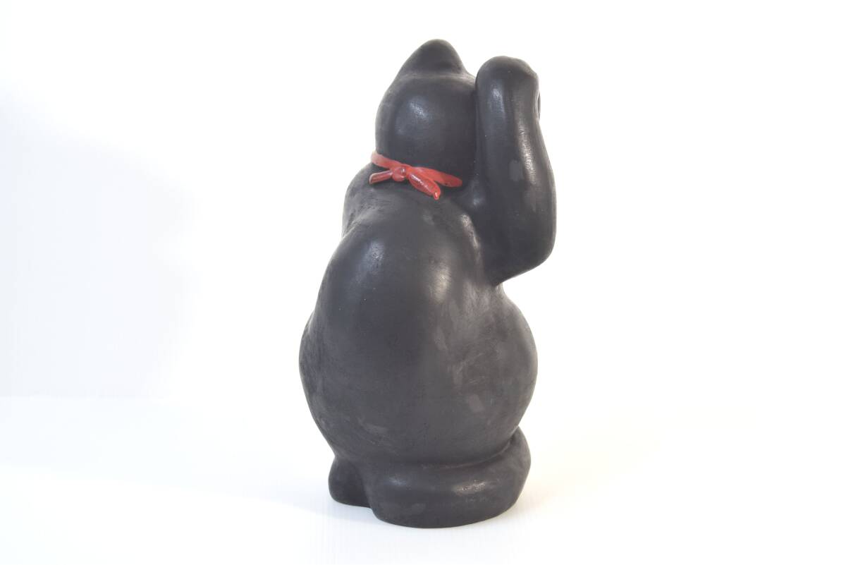 ■ ハニべ焼 右手挙げ 招き猫 高さ約27cm 黒猫 ハニべ岩窟院 福招き 縁起物 金運 ■