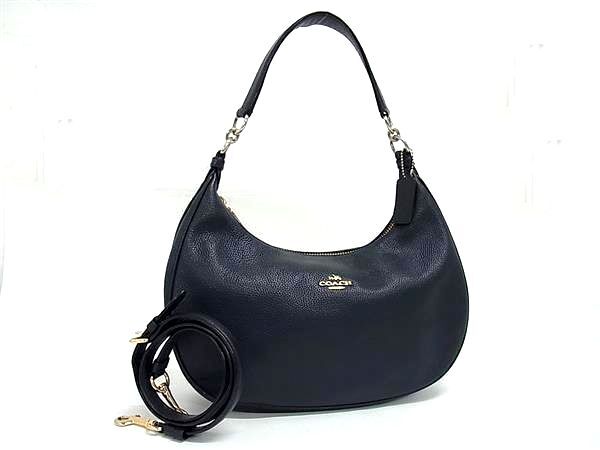 1円 ■美品■ COACH コーチ F38250 レザー 2WAY ショルダーバッグ ハンドバッグ 肩掛け 斜め掛け レディース ネイビー系 BS0676