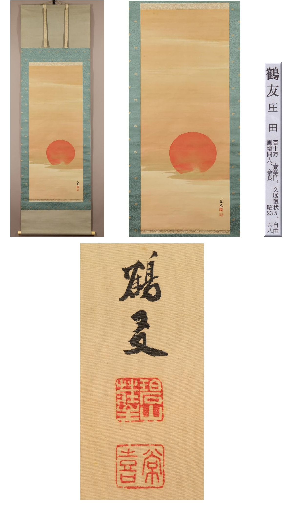 【真作】庄田鶴友◆朝暉満天図◆共箱◆二重箱◆奈良県◆肉筆◆絹本◆掛軸◆w841