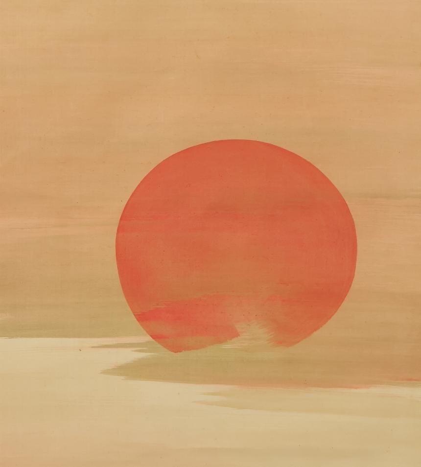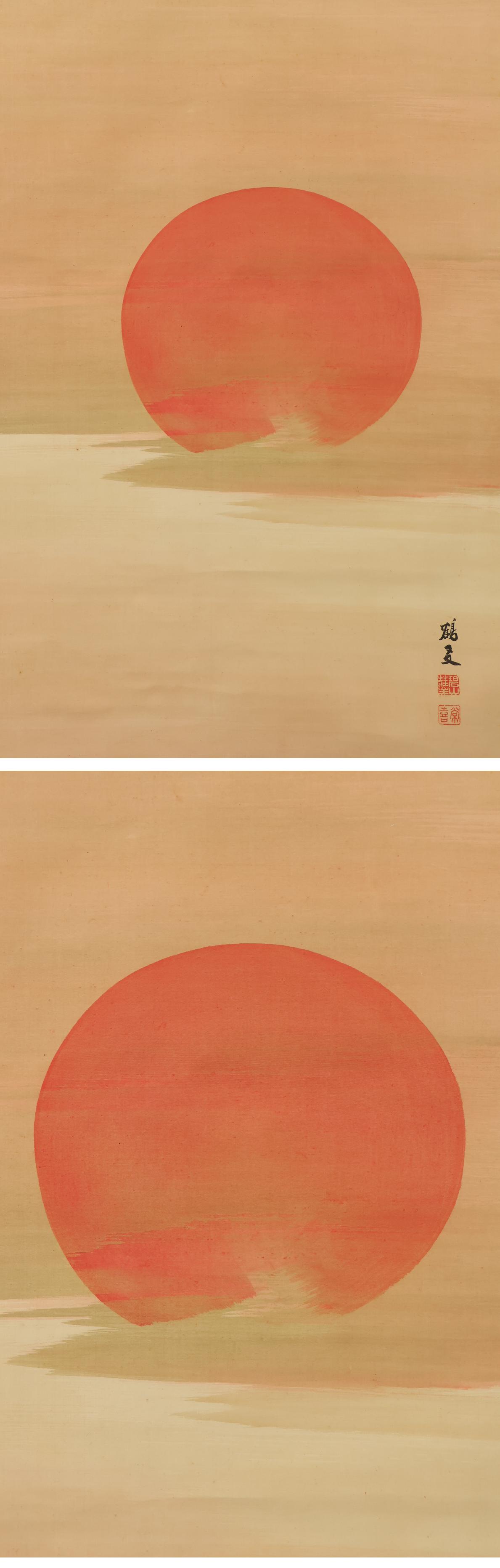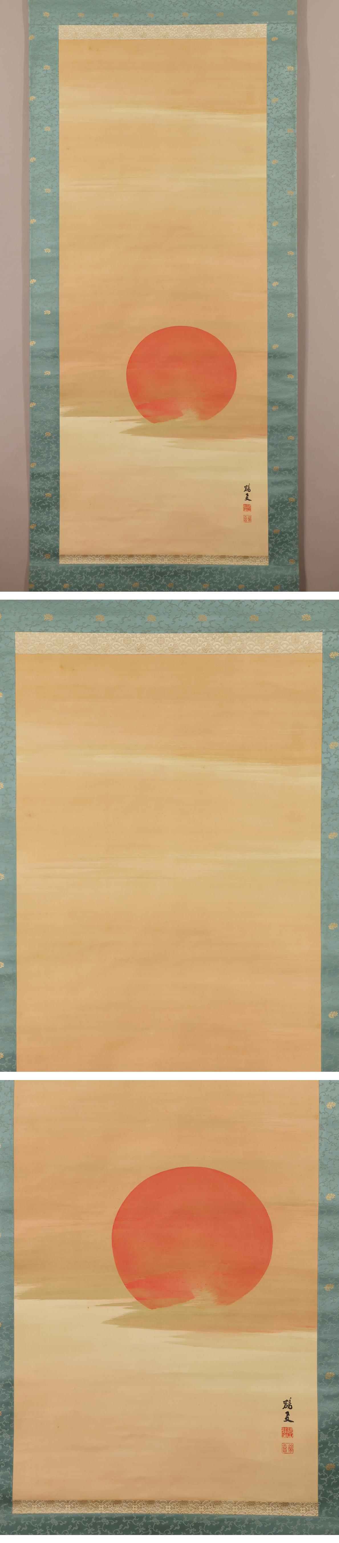 この作品は、肉筆・絹本により『朝暉満天図』が描かれております。