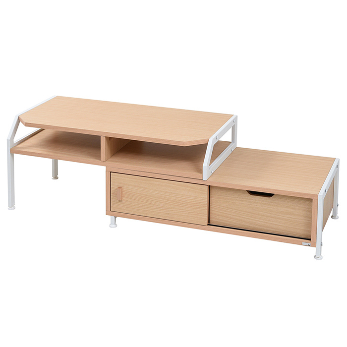 □外寸 幅87~159×奥行41.5×高さ40.5cm □内寸 [天板]幅82×奥行39.5cm×高さ40.5cm [オープン部左右]幅30/40/50cm×奥行40×高さ10.5cm [引き戸内]幅38×奥行36×16.5cm [引き出し]幅32.5×奥行28.5×高さ10.5cm [下台天板]幅0~72×奥行40 [伸縮時オープン部]幅0~73.5×奥行40×高さ25.5cm |
