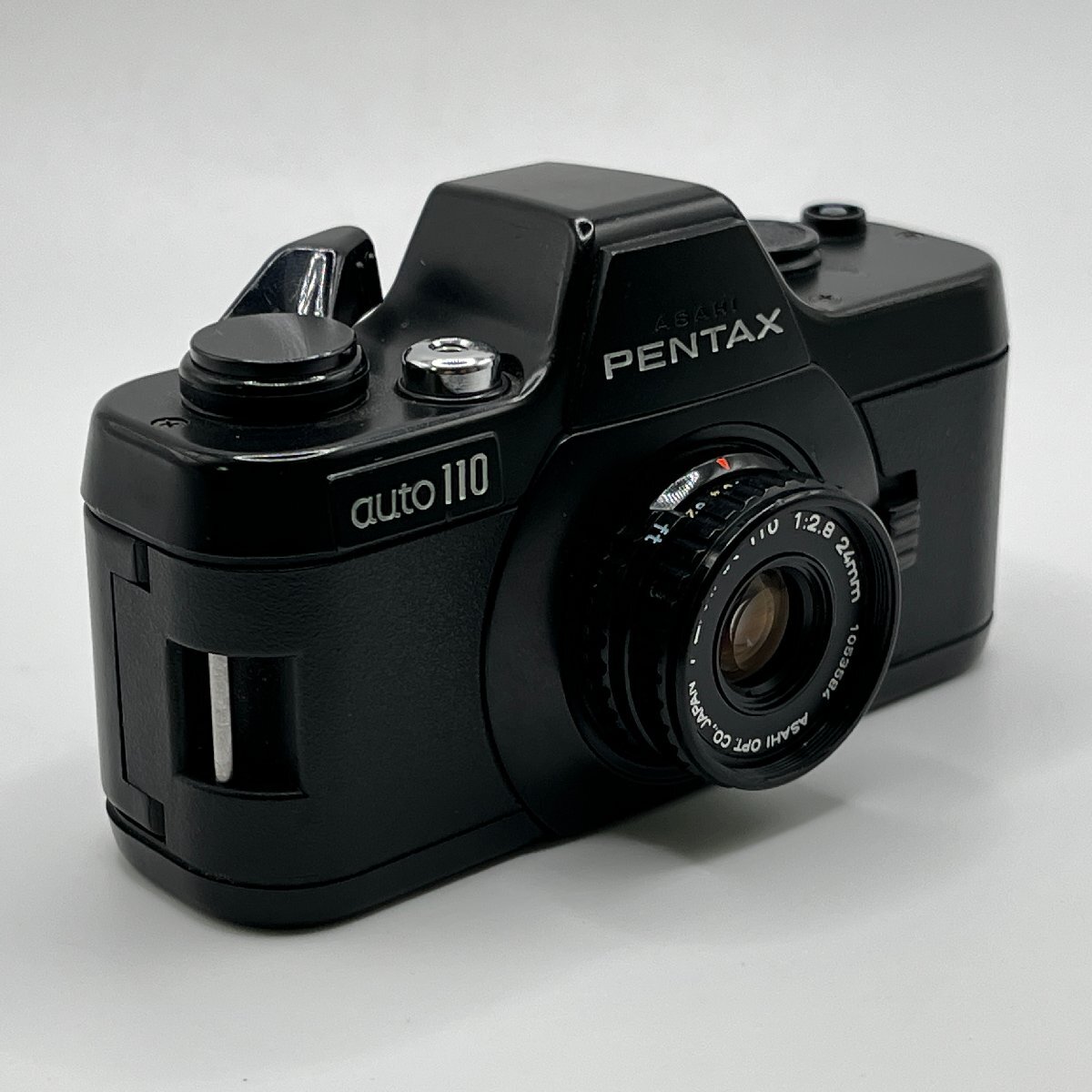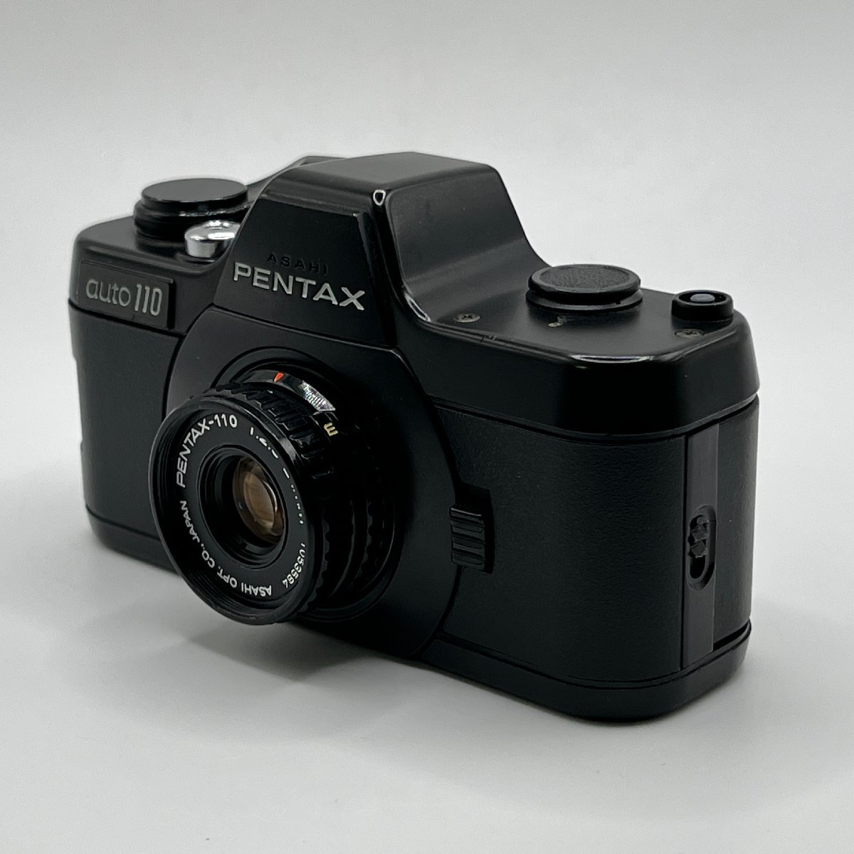 110フィルムに対応した、ペンタックスの超小型一眼レフカメラとレンズです。