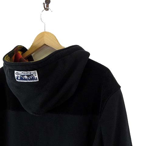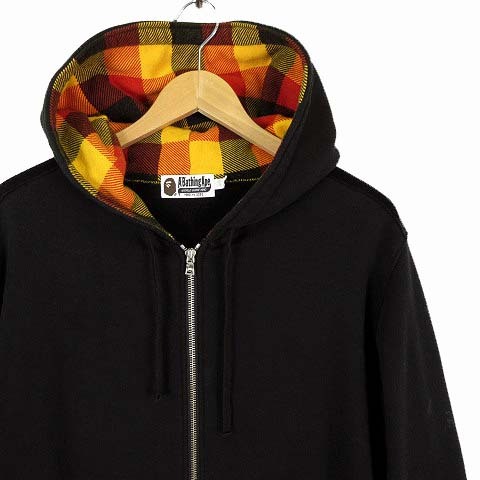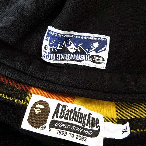 アベイシングエイプ A BATHING APE パーカー フードパーカ ロゴ 刺繍 コーデュロイ ドッキング XL 黒 ブラック 黄色 国内正規品