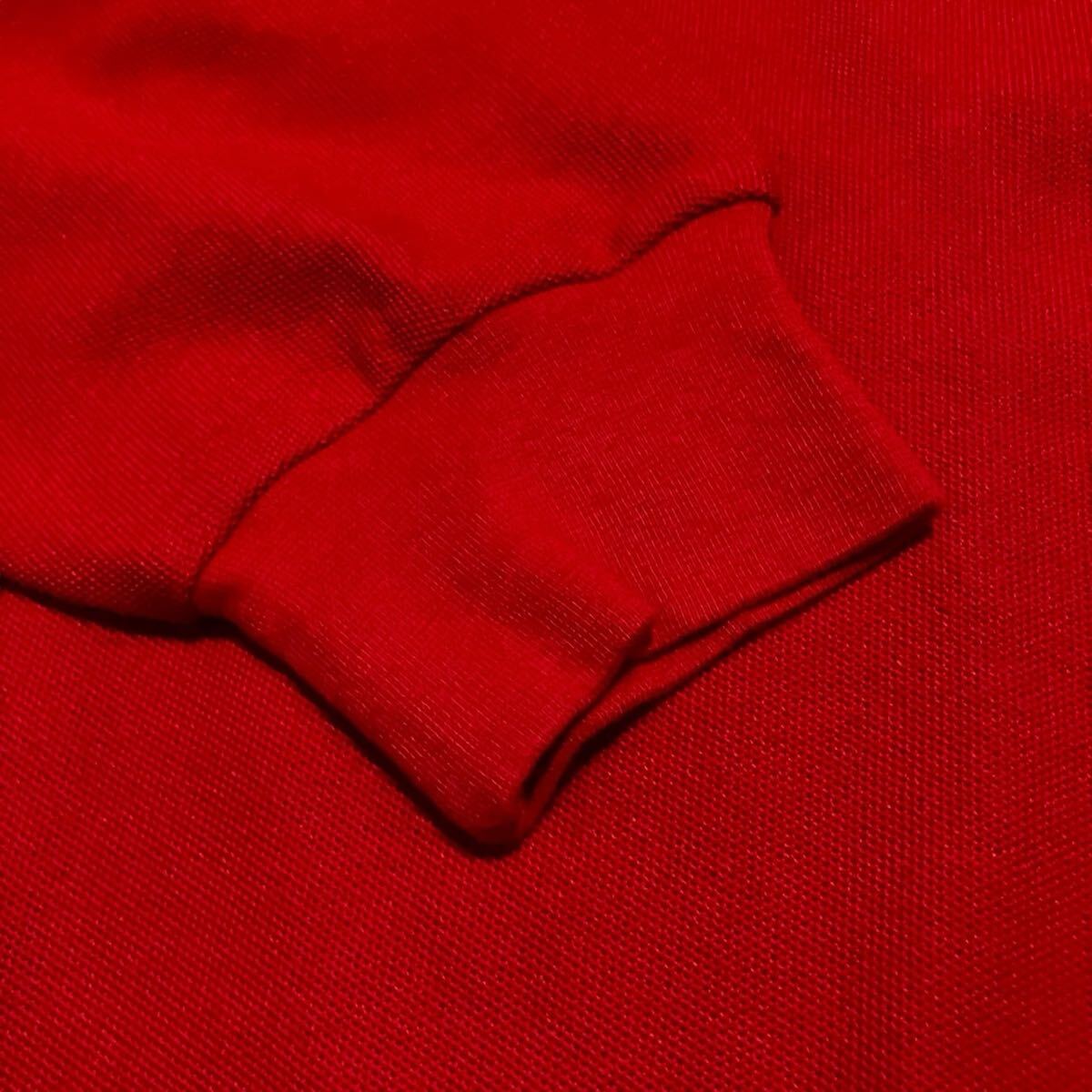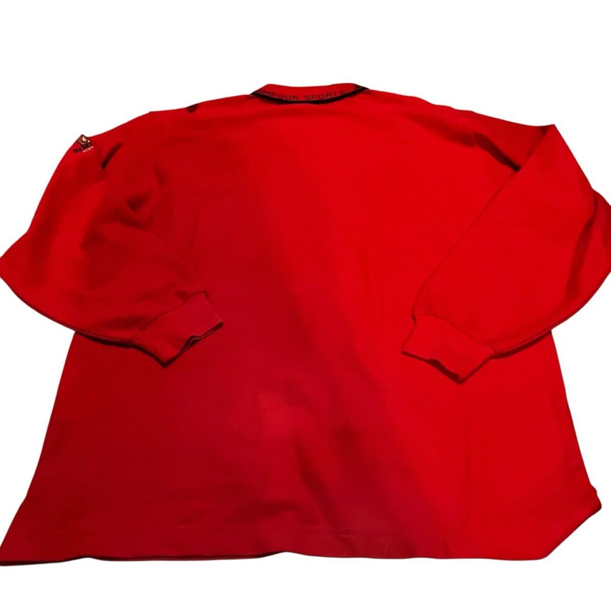 シンプソンズ・スポーツのレトロなハーフジップ長袖シャツ。鮮やかな赤にブラックのロゴ刺繍とキャラクターのプリントが映えるヴィンテージ感ある一枚。襟と袖にもブランドロゴ入りのデザインで、ストリートにもカジュアルにも合わせやすいアイテムです。日本製でしっかりとした生地感(綿60% ポリエステル40%)。90年代のスポーツミックススタイルを感じる希少な一着。