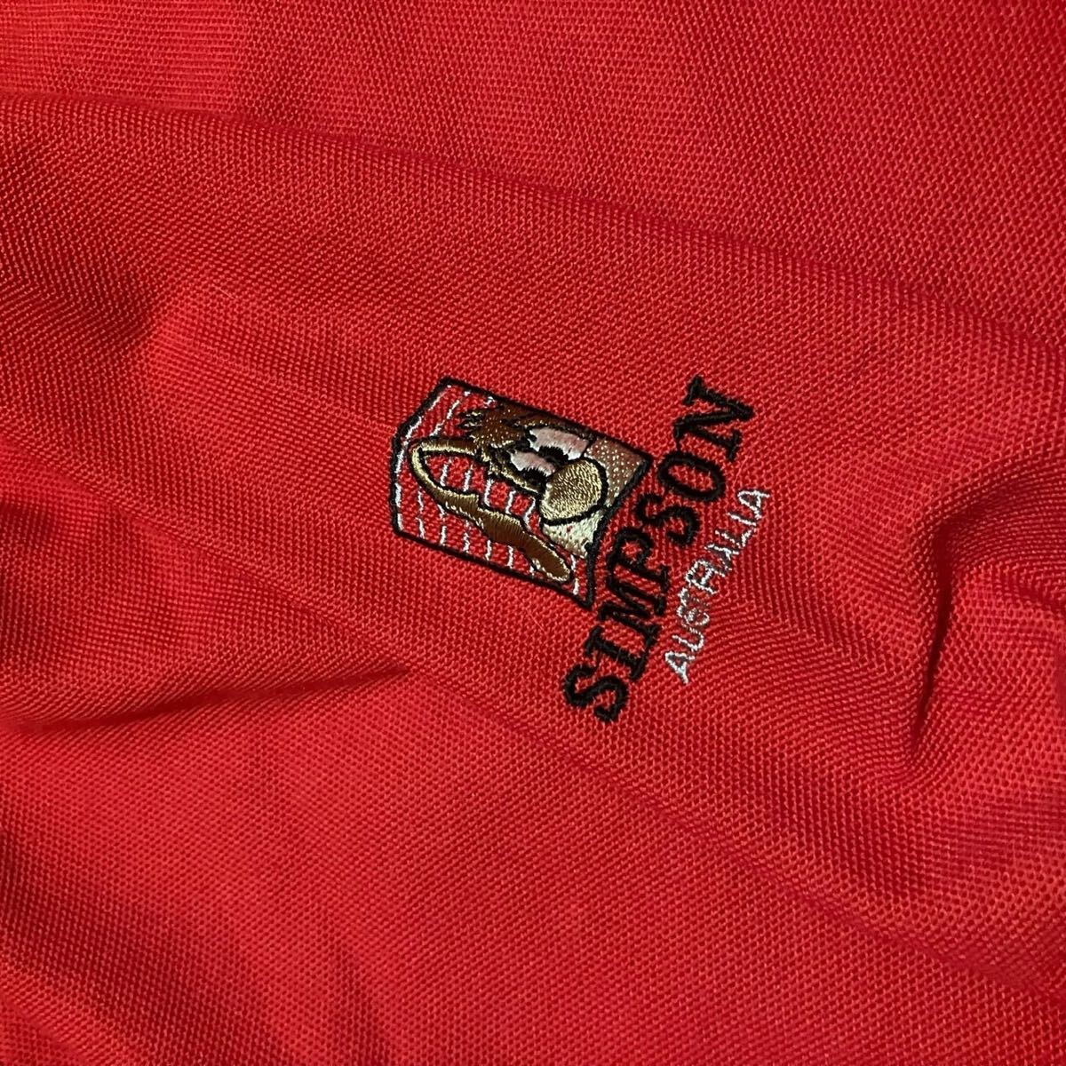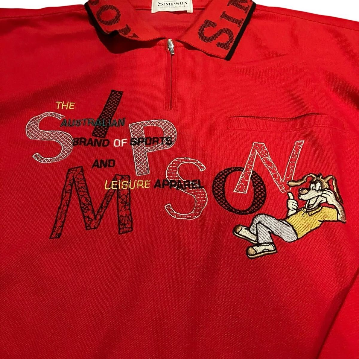 #SimpsonSports #シンプソン #ヴィンテージシャツ #レトロファッション #赤シャツ #90sファッション #ストリートスタイル #メンズカジュアル #スポーツミックス #VintageClothing #RetroStyle #Streetwear #MadeInJapan
