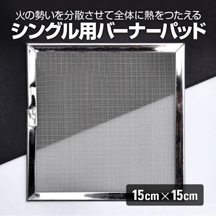 ◆バーナーパッド シングルバーナー五徳 コンパクトバーナー にピッタリキャンプ用品 約15×15cm 耐熱鋼メッシュ バーナーの炎を分散 鍋全体に熱分散 バーナーパッド BPD1515