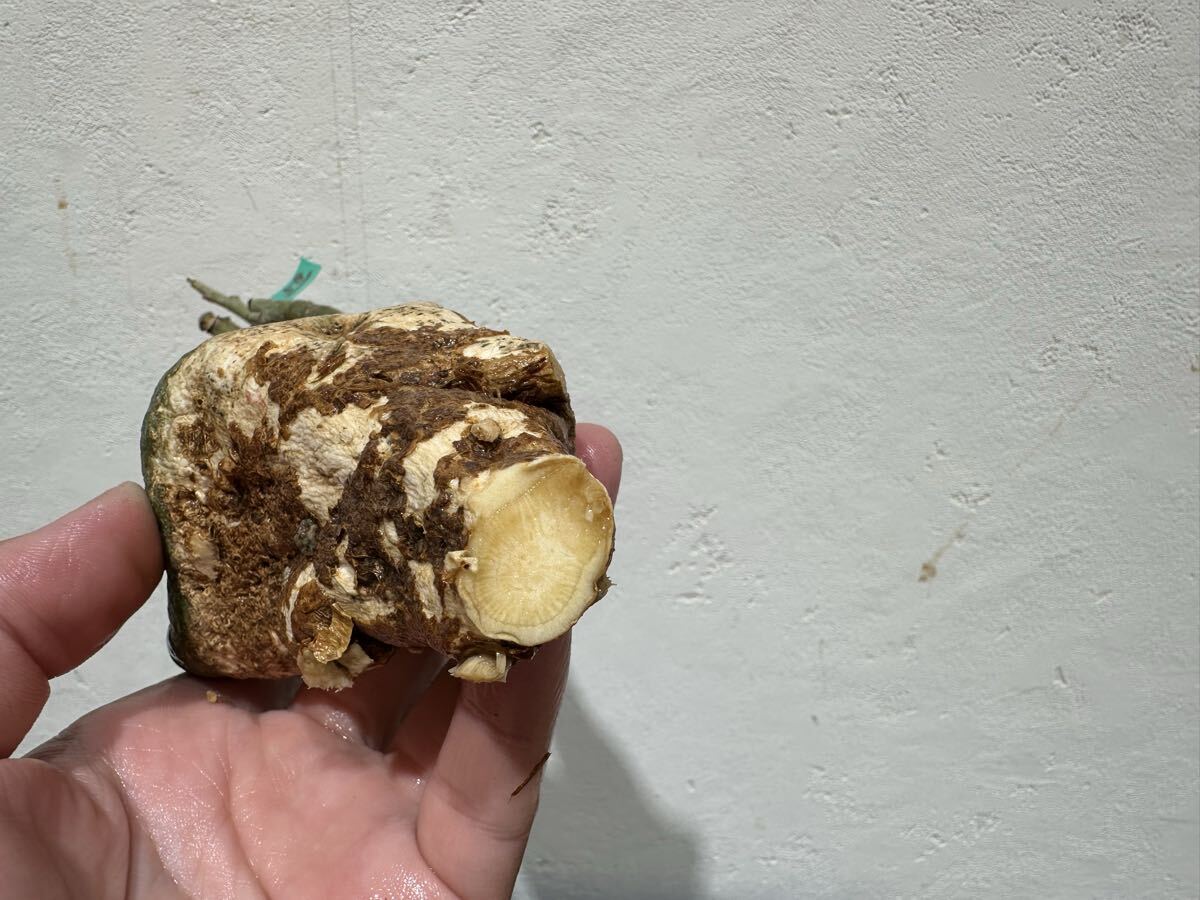 写真撮影日は10/6です。主根を切って腐りが入っていないことを確認しています。撮影後、主根断面を殺菌して乾燥させております。