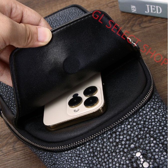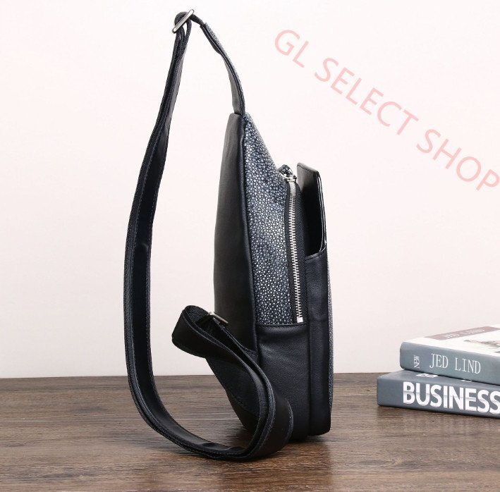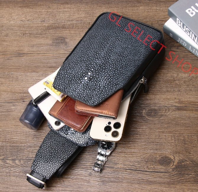 高品質 エイ革 ショルダーバッグ ガルーシャ スティングレイ ブラック黒メンズ 斜め掛け レザー本革 ポリッシュ加工 カバン 鞄 (A178)