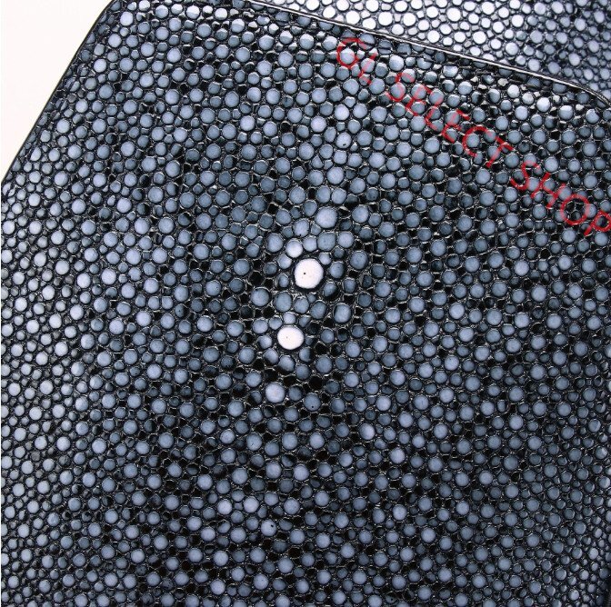 非常に硬くて光沢感があり、まるで、ガラスビーズを一面に敷き詰めたような細かい突起が特徴的な革です。