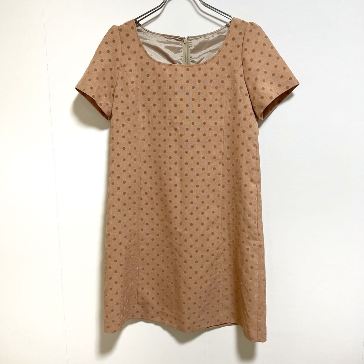 ドット柄半袖Aラインワンピース