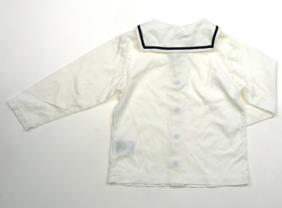 前ボタンタイプ。綿素材。右袖に黄色いシミあり。普段使いにいかがでしょうか。