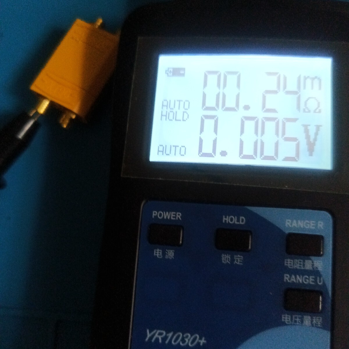 オスメス接続時の抵抗は概ね0.3mΩ前後でした。かなり低抵抗なので測定誤差込みでお考え下さい。