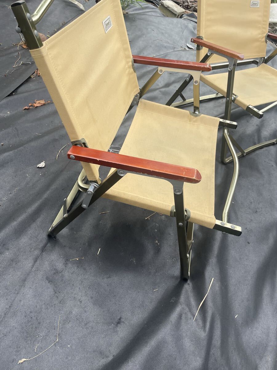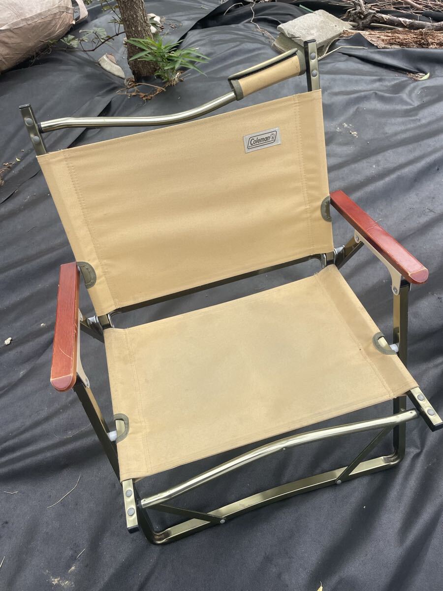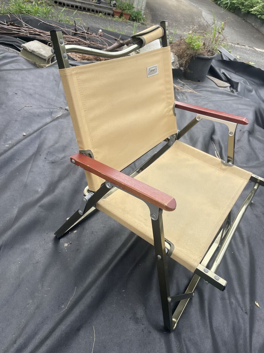 コールマン チェア アウトドア キャンプ 焚き火 難燃素材 廃盤 ローチェア ナチュラル ブラウン ウッドアーム ヴィンテージ