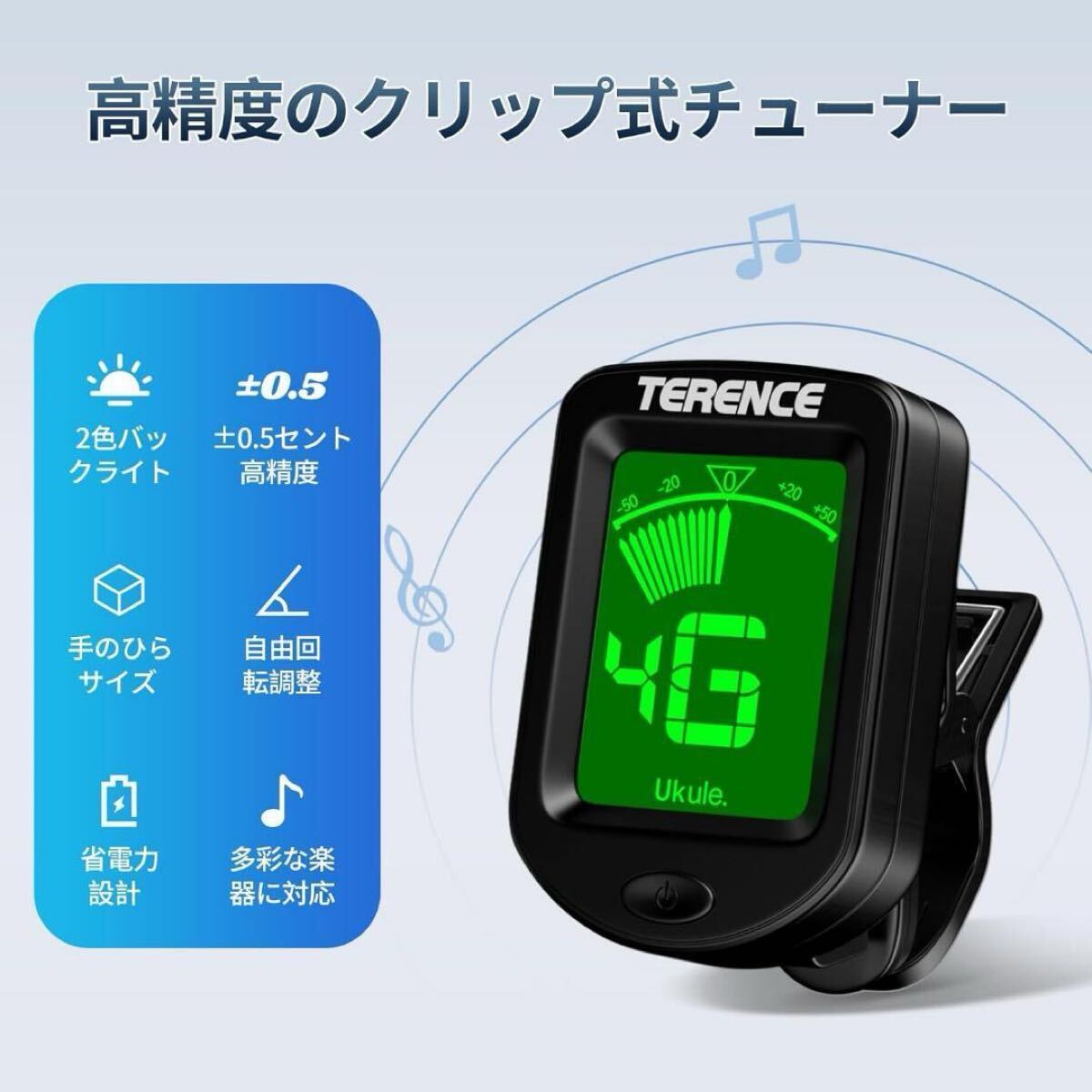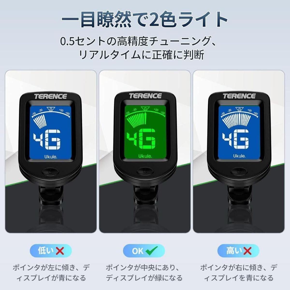 TERENCE ギター チューナー クリップ式チューナー 高精度 カラー表示 2色バックライト コンパクト 楽器に損傷なし 個人練習 初心者向け ギター/ベース/ウクレレ/ヴァイオリンなどにも対応 日本語取扱説明書付き ブラック