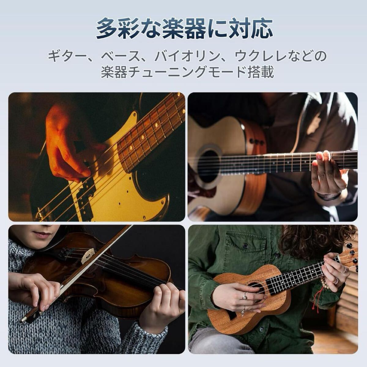 【多彩な楽器に対応】本チューナーには、ギター、ベース、バイオリンなど様々のな楽器のチューニングモードがあり、高精度、高感度でスピーディーなチューニングを実現し、各種楽器の初心者がこの楽器の定音技術を素早く習得
