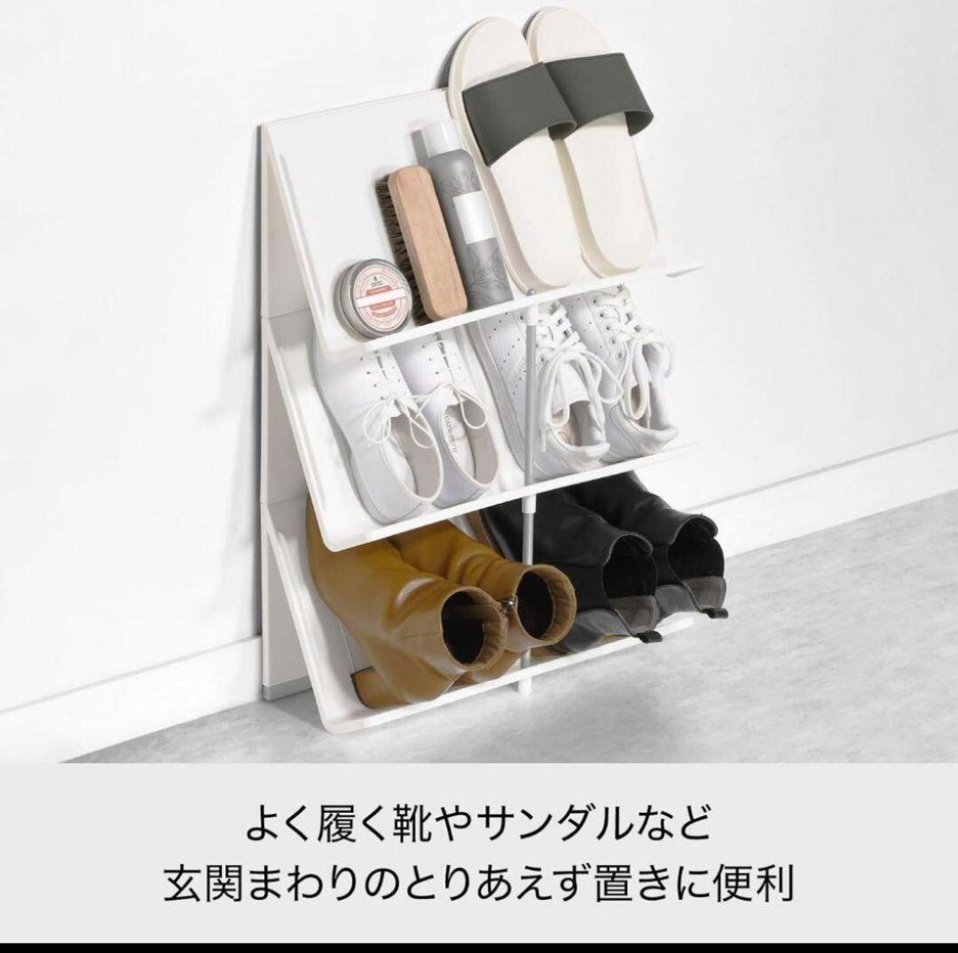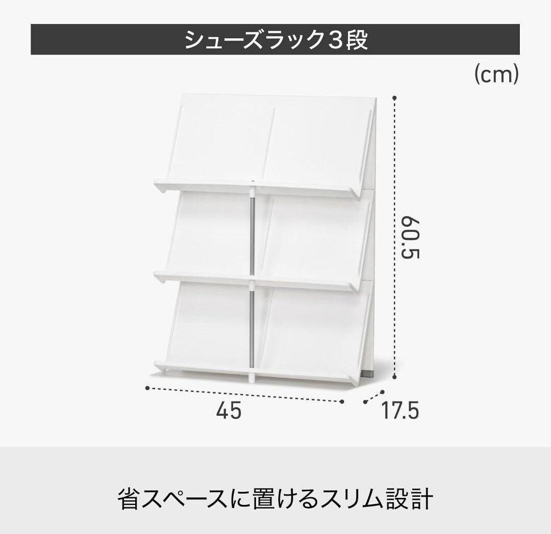 ライクイット サッと取り出しシューズラック3段 ホワイトの靴収納ラック、奥行き17.5cmで省スペース設計。