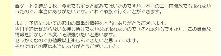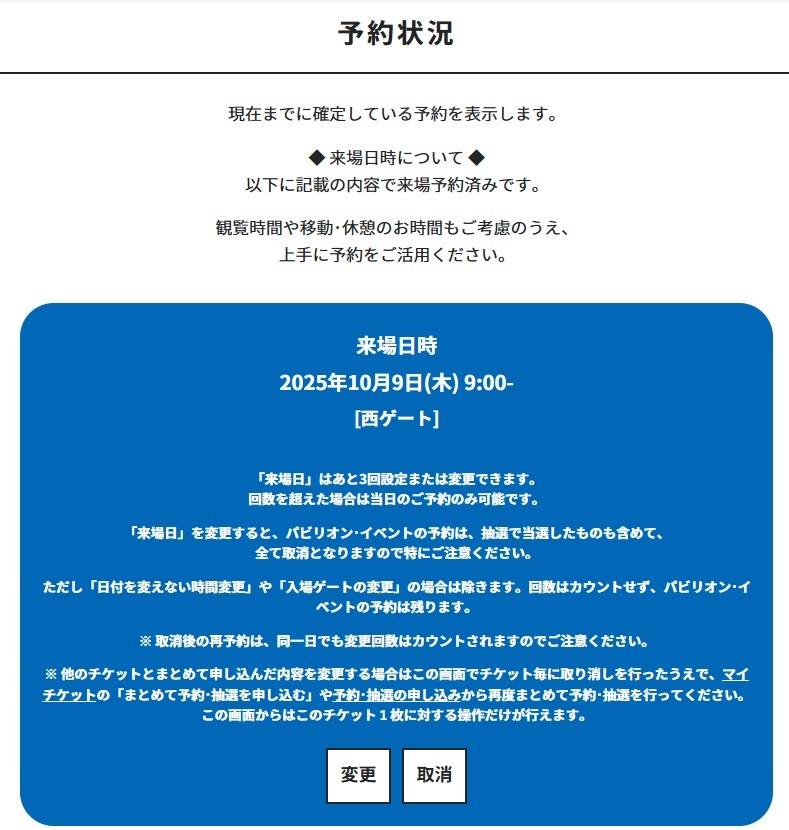 当日何も予約して居らず万博に行かれた方も、即決の方には情報を元にいくつか取れて楽しんで頂いたようで情報をお渡しした甲斐がございました