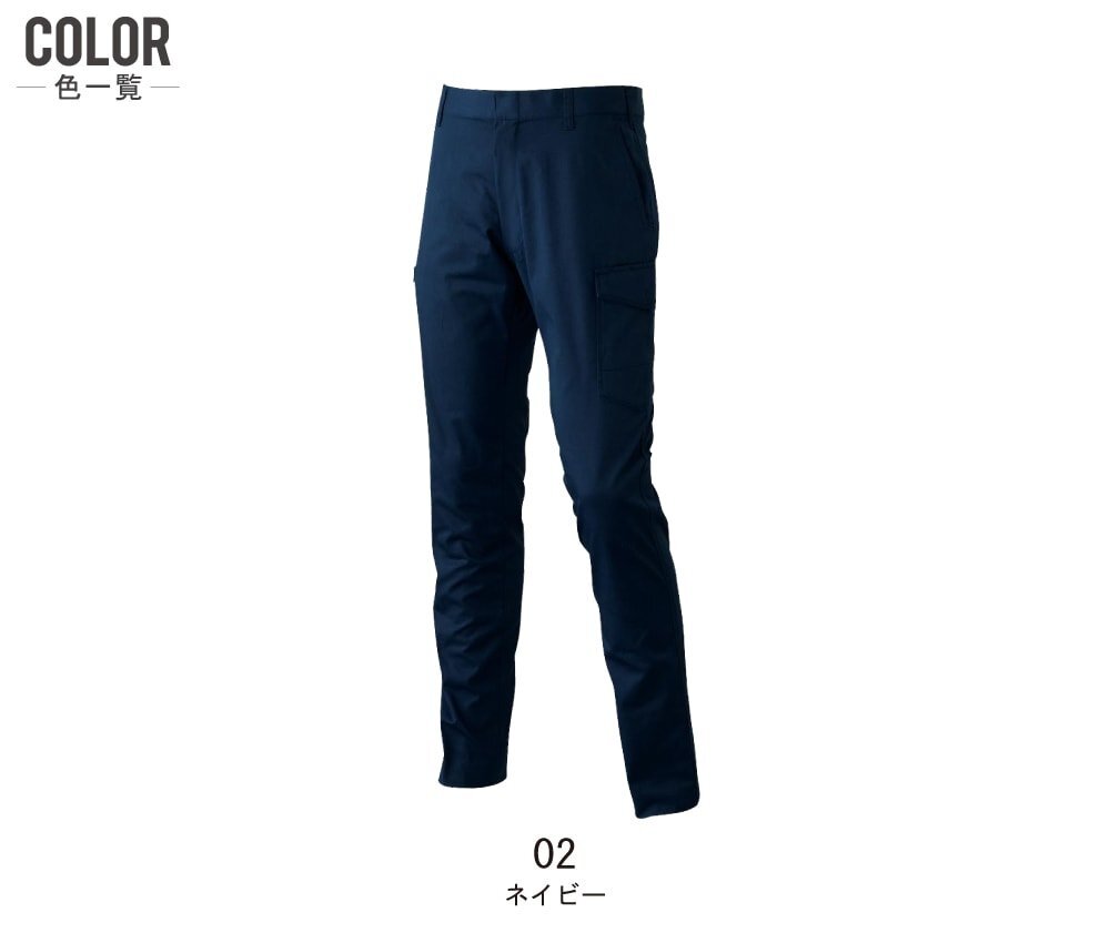 特長:国内素材/制電/ストレッチ/形状安定/ノータック/右ファスナー付カーゴポケット