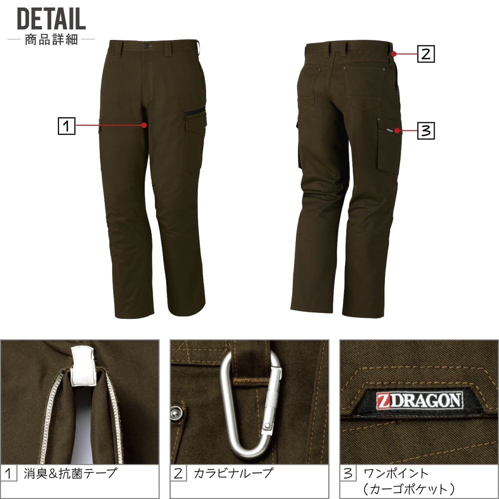 Z-DRAGON ジィードラゴン 秋冬 ノータック カーゴパンツ 丈夫でソフトな着心地 71402 色:シックブラック サイズ:85