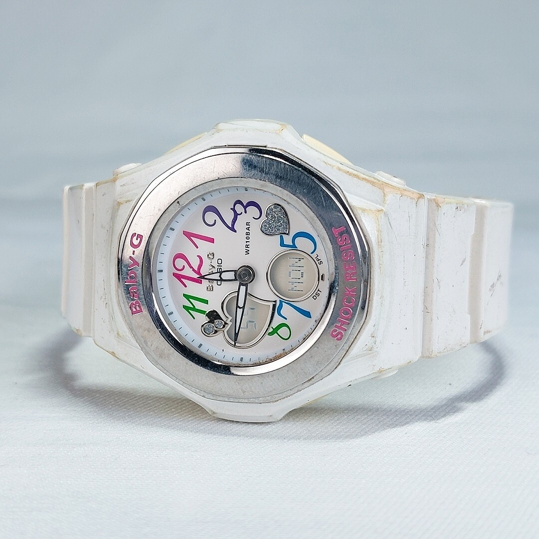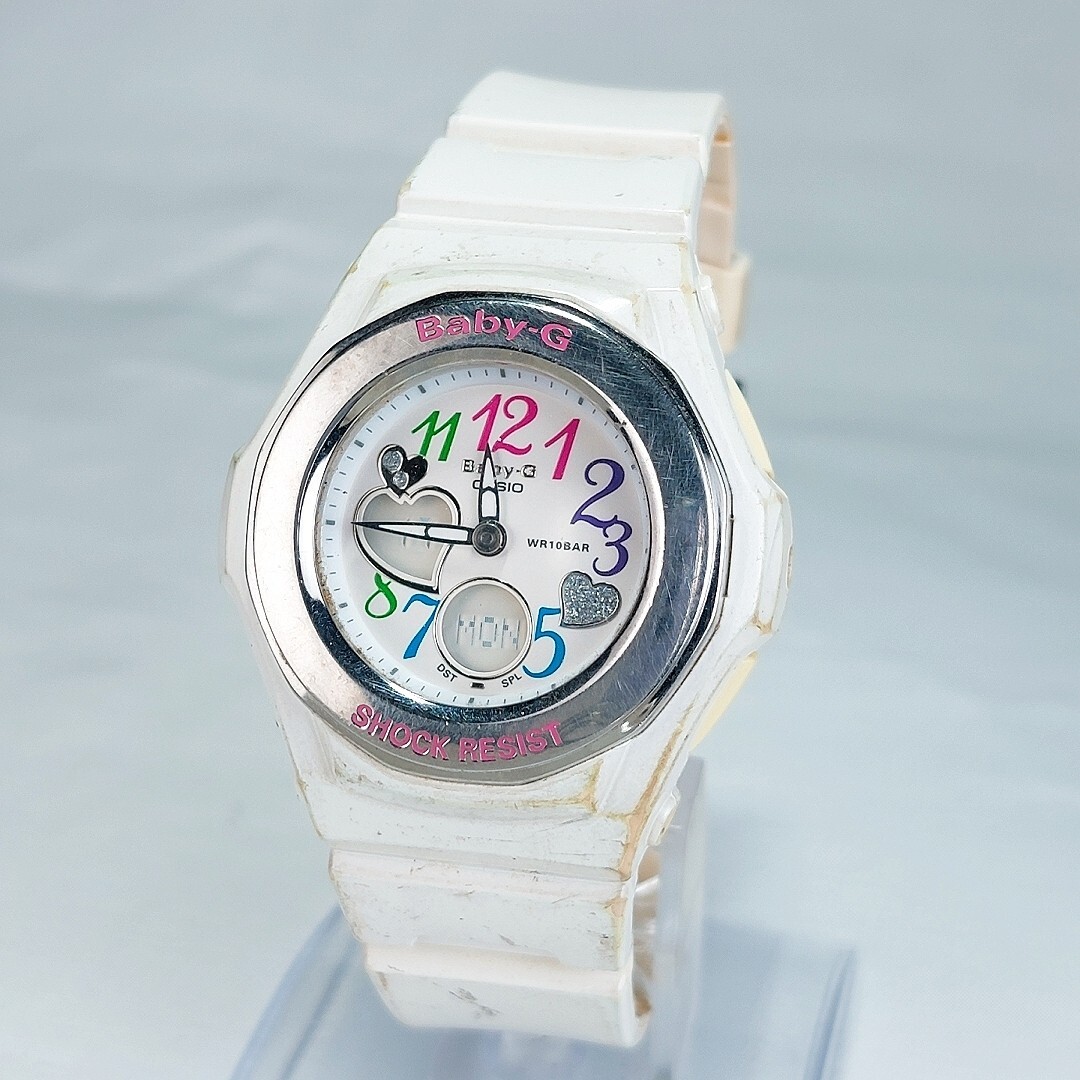 美品 CASIO カシオ Baby-G ベビージー BGA-101-7B2 アナデジ クォーツ 腕時計 ホワイト ラバーベルト ステンレス 新品電池交換済み