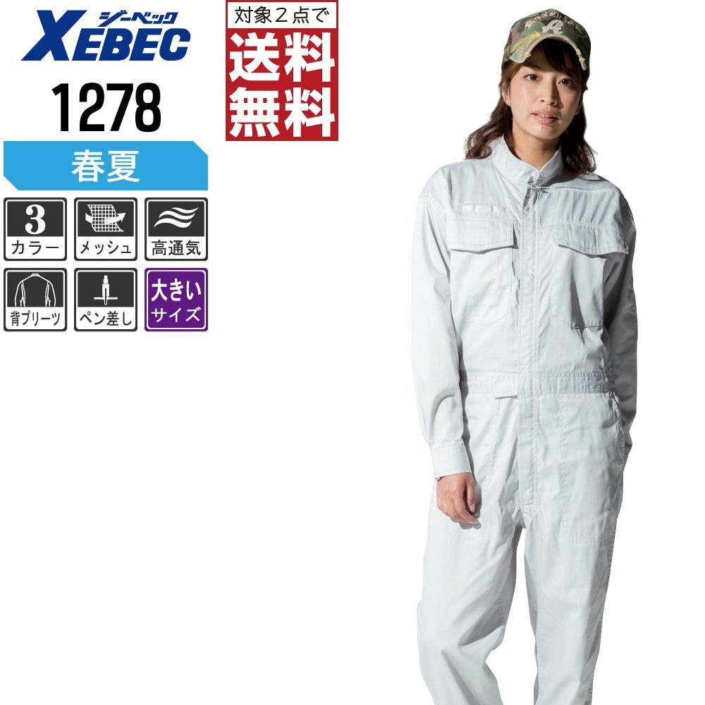 ジーベック 春夏 長袖 つなぎ 脇下・ウエスト メッシュ 1278 色:チャコールグレー サイズ:4L ★ 対象2点 送料無料 ★