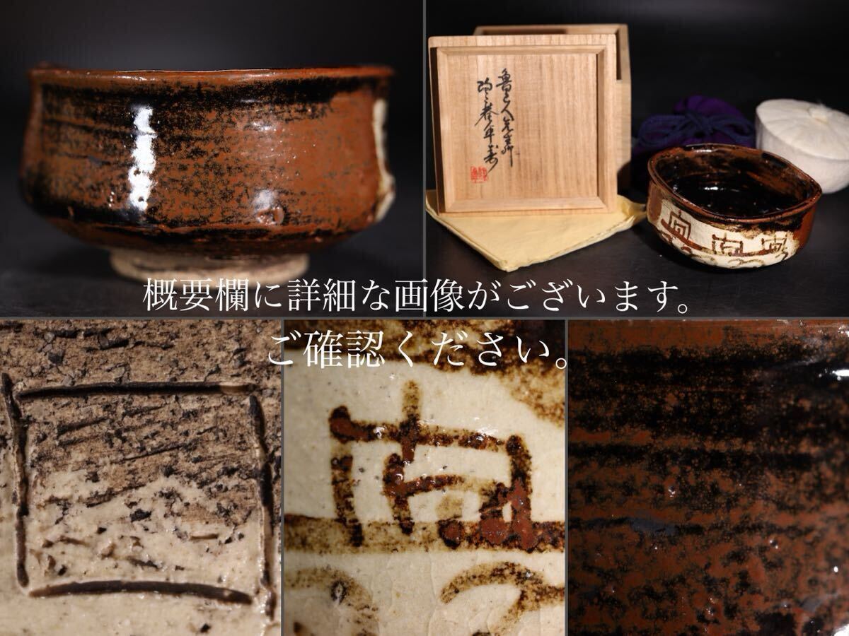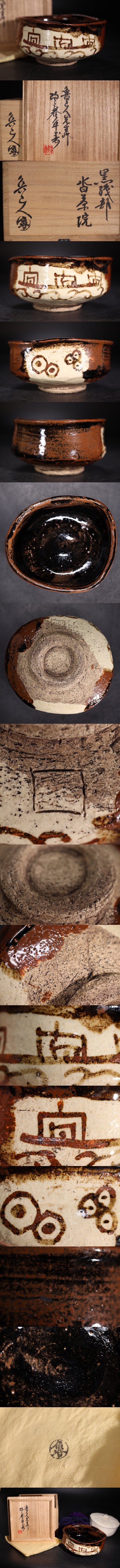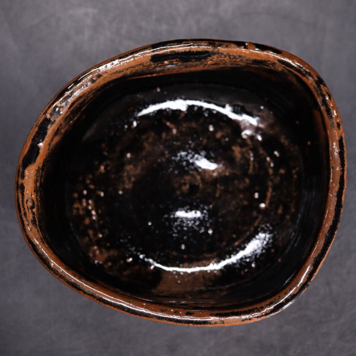 北大路魯山人 作 「 黒織部 沓茶碗 」 陶々庵識 識箱 / 織部 茶碗 茶器 煎茶道具 煎茶飾 .G2718 |