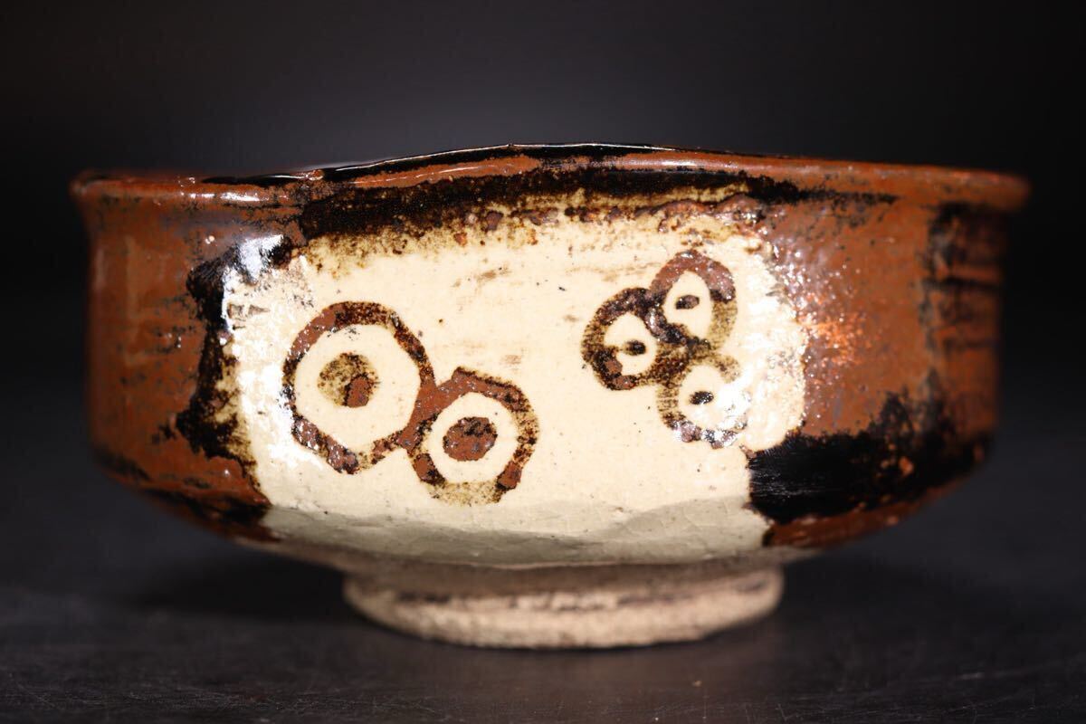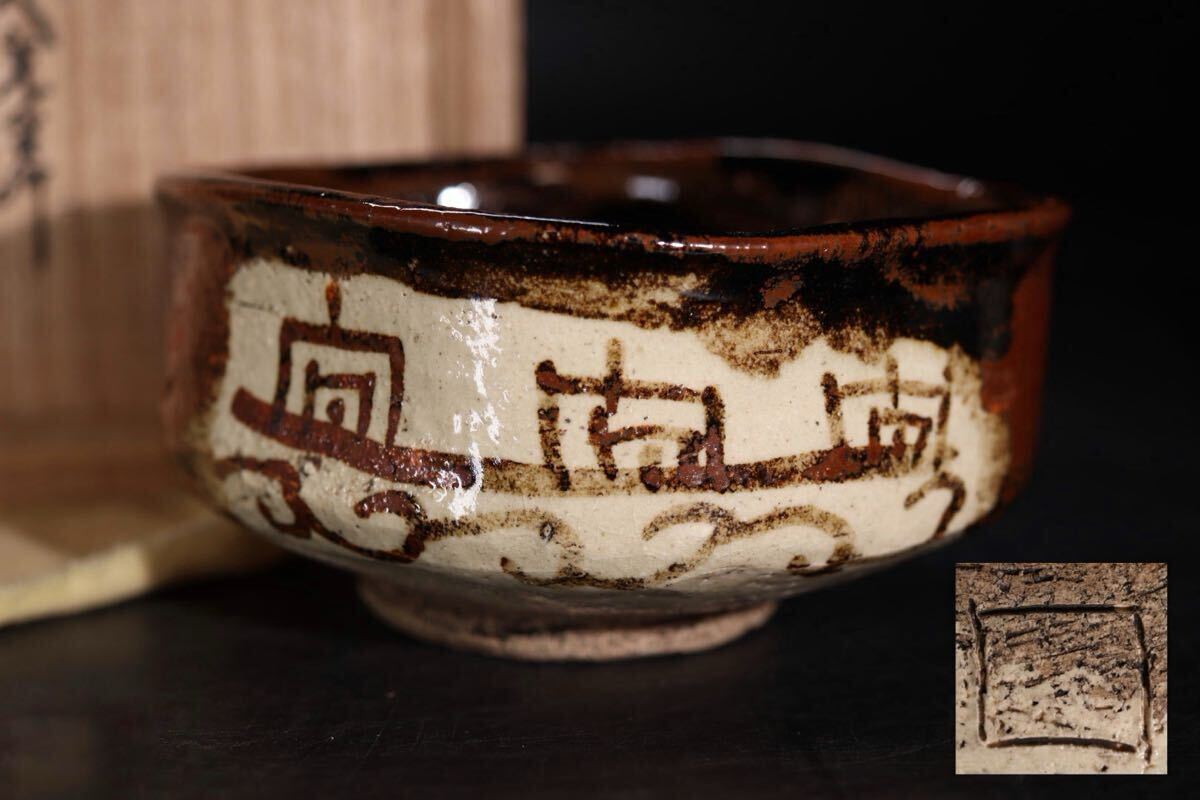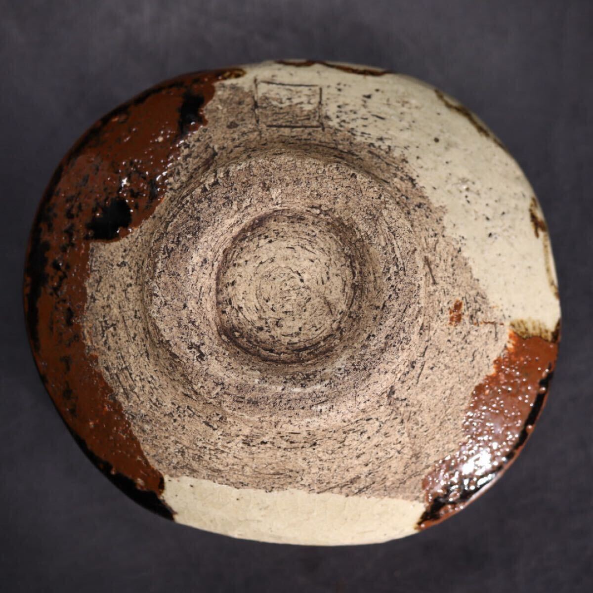 北大路魯山人 作 「 黒織部 沓茶碗 」 陶々庵識 識箱 / 織部 茶碗 茶器 煎茶道具 煎茶飾 .G2718 |