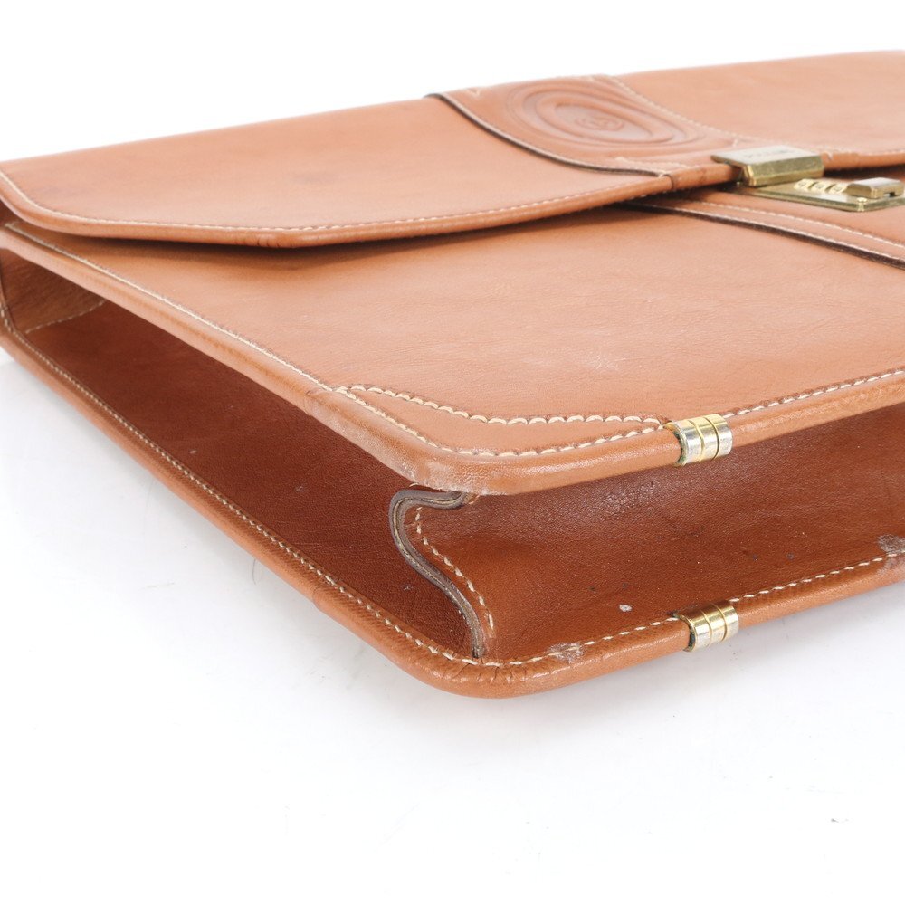 1円■美品■ポリーニ■イタリア製 レザー ビジネス バッグ 書類鞄 ブリーフケース トート 通勤 ブラウン 茶色 A4 メンズ RUE CQ14-10