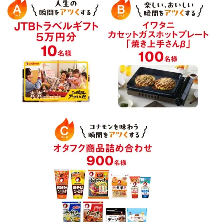 高額レシート懸賞応募 みんなでアツイ瞬間楽しもうキャンペーン JTBトラベルギフト5万円分やカセットガスホットプレート等当たる オタフク