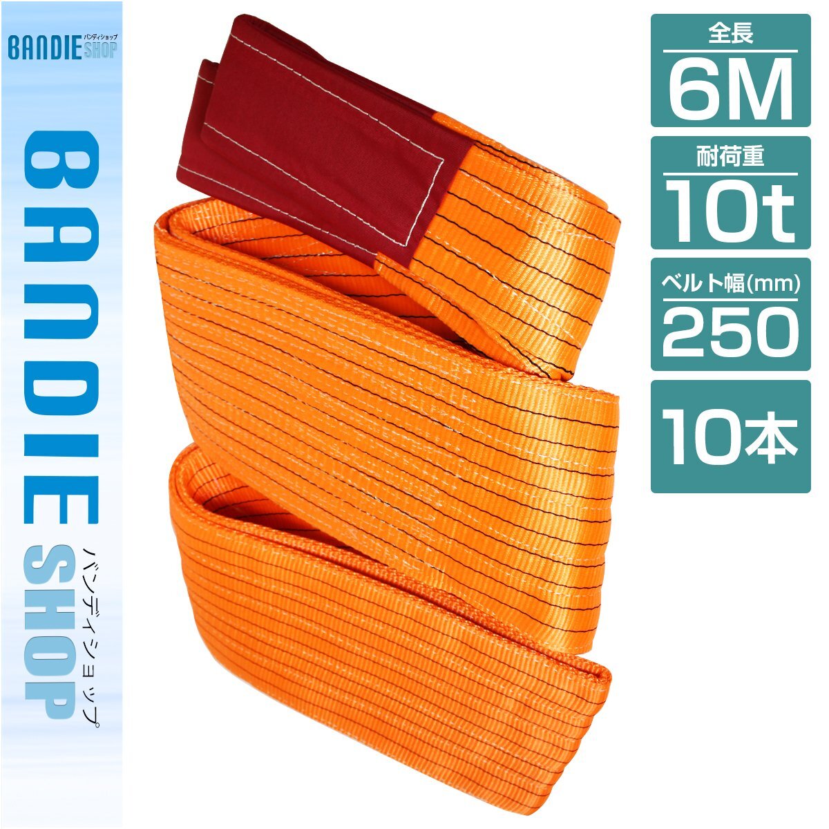 [10本 セット/耐荷10t/長さ 6m] スリング ベルト 吊上げ ナイロン クレーン ロープ 荷吊り 玉掛け 牽引 運搬 10トン 幅250mm