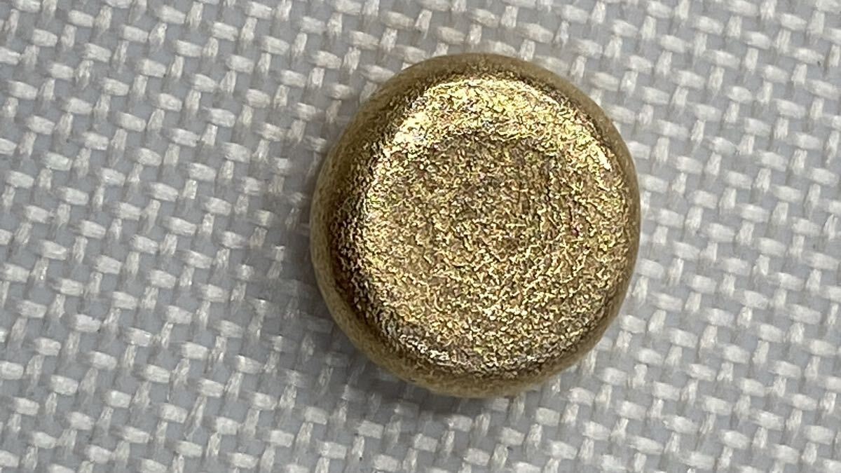 金製品をバーナーで溶解し、3.27gにまとめました。今回、磨いて光沢を出してみました。艶々でとても綺麗です。素人が趣味の範囲でやっているので、完璧な物をお探しの方はご遠慮下さい。