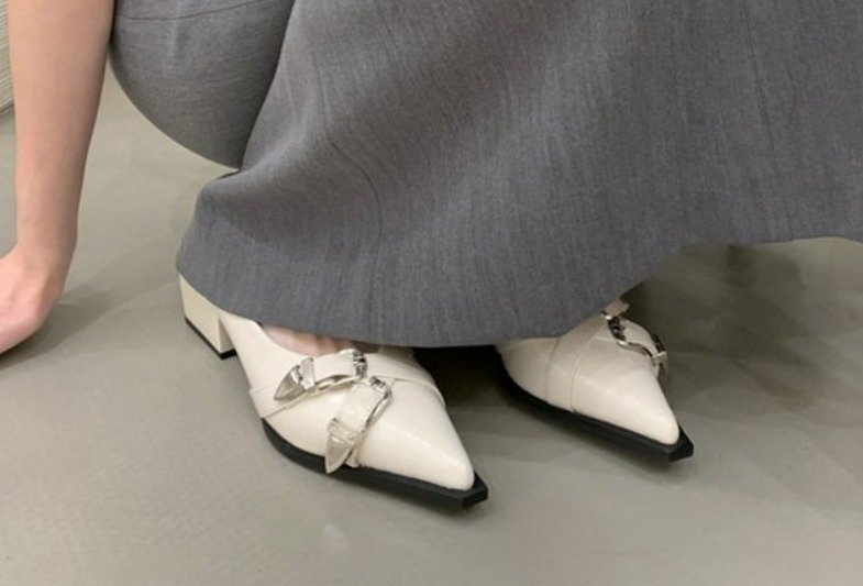 【高品質】全2色 スリッポン ローファー モカシン 切り替え 太いヒール とんがりトゥ 無地 シンプル 37 ブラック