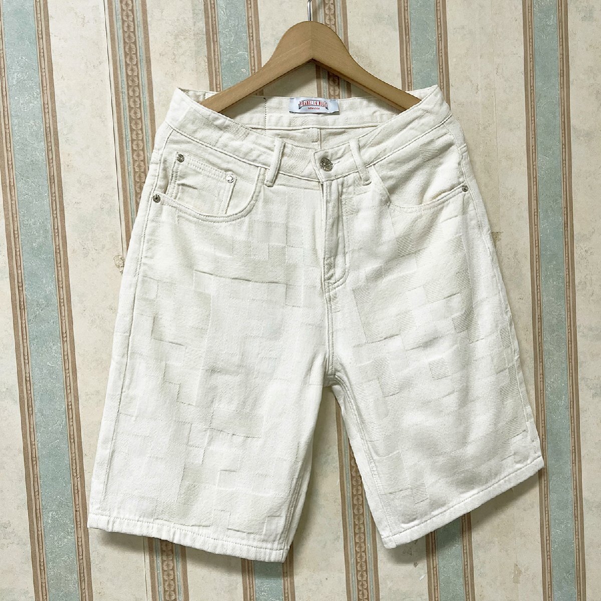 人気 定価3万 FRANKLIN MUSK・アメリカ・ニューヨーク発 デニムパンツ チェック柄 ショートパンツ 短パン ストレート 普段着 夏 サイズ31