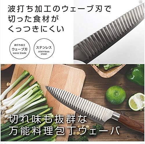 切れ味も抜群な万能料理包丁ウェーバ 波打ち加工の [ ウェーブ刃 ]で切った食材がくっつきにくい! |