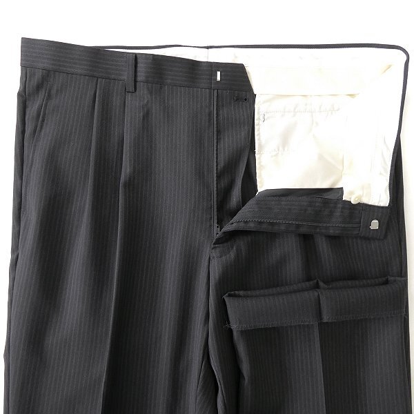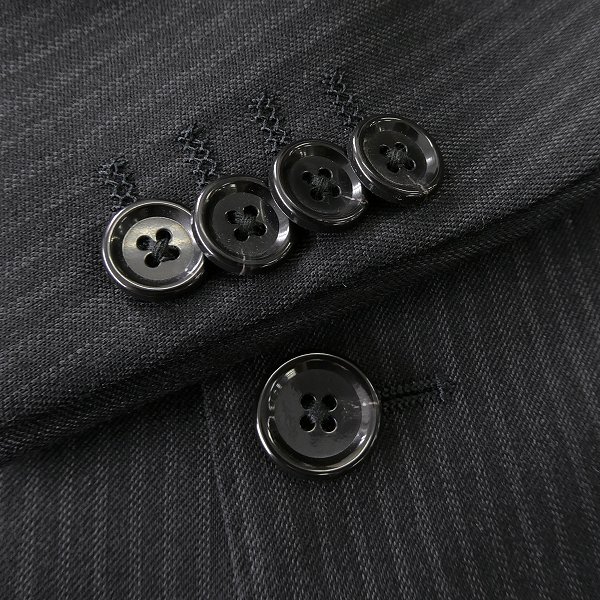 AB9サイズ(やや幅広の4Lサイズ相当) 胸囲104 胴囲94 身長190 ※商品に記載されたサイズ・寸法です※ 【ジャケット】 肩幅49cm 身幅58cm 袖丈66cm 着丈80cm 【スラックス】 ウエスト95cm(内回り1周) 股上29.5cm 股下97cm 裾幅23cm 腿幅33cm(股下10cm部分) 表地:毛97% ポリエステル3% (ポリエステル3%は装飾糸として使用) 胴裏:キュプラ55% ポリエステル45% 袖裏:キュプラ100% 下衣裏地:ポリエステル100% ダークグレー |